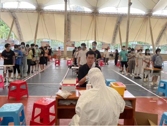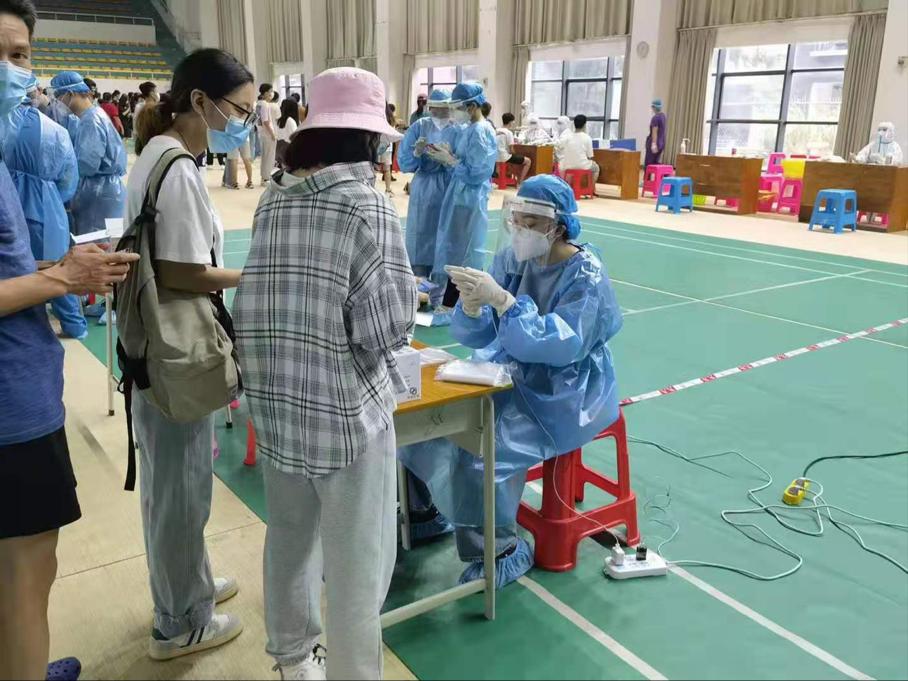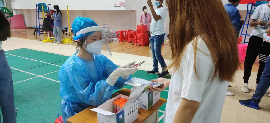 核酸检测是疫情防控的重要手段之一,开展全员核酸检测工作,有利于早发现、早隔离感染者和密切接触者。我院师生志愿者全程参与组织协调,与海南医学院第一附属医院、第二附属医院、附属海南医院三家医院领导、医护人员群策群力、通力合作,组织师生分批次有序到场,扫码、登记、测温、采样。