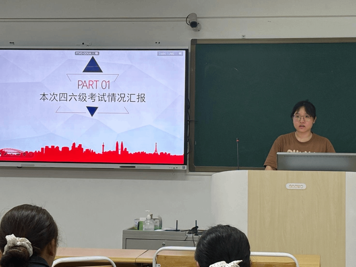 2025年3月12日晚,公共卫生学院22级预防1班以“四六级英语备考心得交流:取长补短,共攀高峰”为主题,举办备考经验分享会。班会通过数据汇报、经验分享、互动答疑及班主任动员讲话等环节,为同学们提供了系统化的备考思路,现场气氛热烈,干货满满。