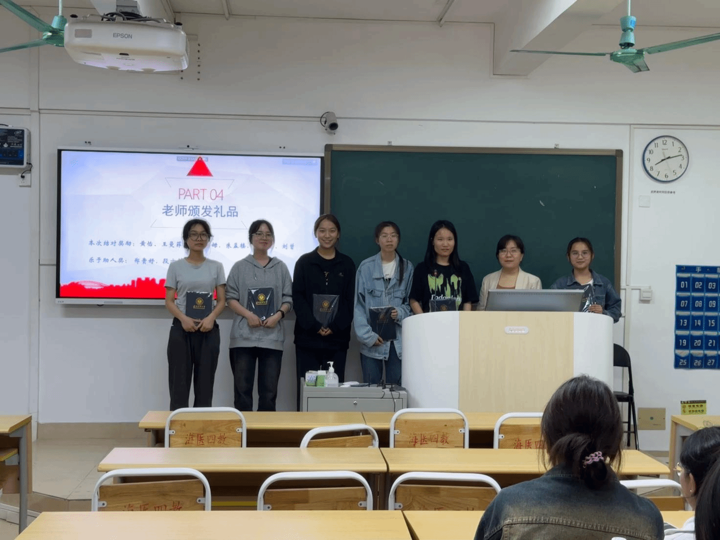 班会临近尾声,李晓珍老师为分享经验的同学颁发纪念礼品,肯定大家的努力付出;同时,表彰了主动帮扶补考同学的“互助之星”郭巧露、郑贵妤、段亦萱、黄怡和刘曾5名同学。她寄语全班:深化“结对互助”,由通过考试的同学担任“学习导师”,针对性帮扶未通过同学;坚持每日单词打卡、听力精练和真题模拟,将计划细化到每周;营造英语环境,通过晨读会、资源分享群让学习融入日常。备考之路虽艰,但集体的智慧与温暖定能化为登顶的动力!”