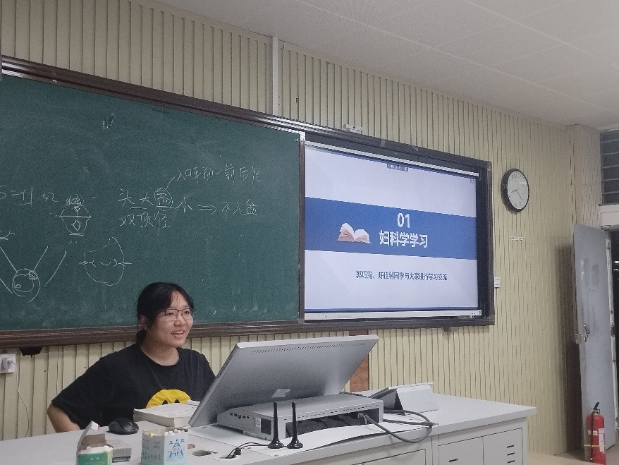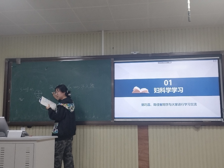 随后,陈佳馨同学通过“七步口诀”(衔接-下降-俯屈-内旋转-仰伸-复位-外旋转)并结合动态图示与网课资源,生动解析了正常分娩机制,帮助同学高效记忆。