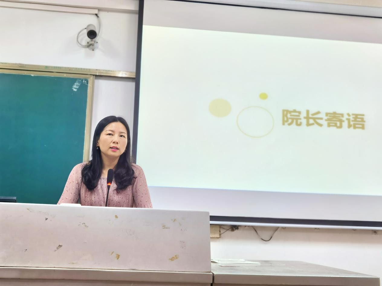 学院副院长张帆教授针对学院和学科发展历程、研究生培养、学术交流、社会服务等基本情况进行了详细介绍。希望新入学的硕士研究生坚定专业方向、端正学习态度、做好学业和人生规划、全面发展。她结合新冠肺炎疫情防控的真实案例从政治素养、科学素养、专业素养和集体奉献精神对研究生提出了殷切期望。