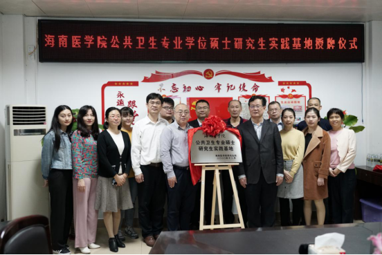 12月24-29日,公共卫生学院受研究生院委托授权,在海南省食品检验检测中心、海口市健康教育所等单位现场举行了海南医学院公共卫生专业学位研究生实践基地建设座谈会暨海南医学院新增公共卫生硕士研究生实践基地授牌仪式。海南医学院副校长孙晓宁教授、研究生院院长王慷慨教授、公共卫生学院院长王璐教授、副院长张帆教授、副院长刘云儒教授、导师代表温莹莹副教授、燕贞副教授、冯棋琴副教授和各基地领导、指导教师代表出席了授牌仪式。王璐院长代表校方对莅临仪式的各专业学位实践基地领导和嘉宾表示了诚挚的感谢。