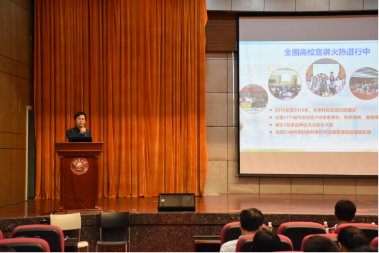 上午8点半,国际报告厅座无虚席,全校各院系学生代表参加了宣讲会。大赛组委会主任李文杰对人口健康“共享杯”大学生科技资源共享服务创新大赛做了详细介绍。该大赛由国家人口健康科学数据中心(原国家人口与健康科学数据共享服务平台)主办,主要承办单位是世界中医药学会联合会以及部分高等院校,大赛获得《世界中医药》等杂志社的支持。大赛旨在推进国家科技平台资源进校园、进院所,进一步深化科技资源开放共享工作,促进在校大学生、研究生充分利用国家科技平台资源开展科技活动,培养学生科技创新实践能力。涉及到的专业领域极其广泛,包括基础医学、临床医学、药学、中医药、公共卫生、人口生殖与健康、生命科学、护理、计算机与信息工程等。