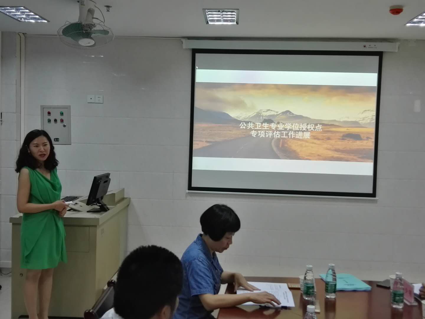 其后,由公共卫生学院研究生管理办公室主任赵婵娟老师对2018年公共卫生专业学位授权点专项评估的工作进展做了汇报。她从专项评估方案概况、自我评估开展情况和待解决的关键问题三个方面总结了此次迎评工作中取得的进展和面临的问题,分析了目前本学位点研究生教育面临的挑战和机遇,并围绕评估的六个一级指标,就下一步学位点建设和研究生教育工作提供了讨论的方向。