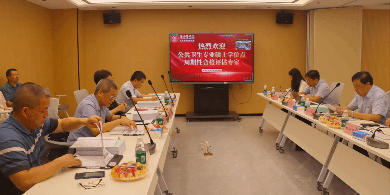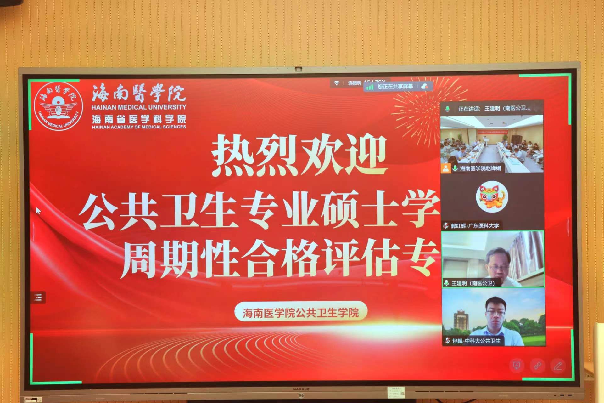 南京医科大学王建明教授担任评审组组长,评审组成员还包括中国科学技术大学公共卫生研究院执行院长包巍教授、中国疾病预防控制中心王璐研究员、广东医科大学公共卫生学院副院长郭红辉教授、海南省疾病预防控制中心罗会明主任医师、海南省卫生健康委员会信息统计中心王存库主任、海南省疾病预防控制中心首席专家金玉明主任医师。分管副校长邹卫国教授、学院领导班子、师生代表出席了本次会议。