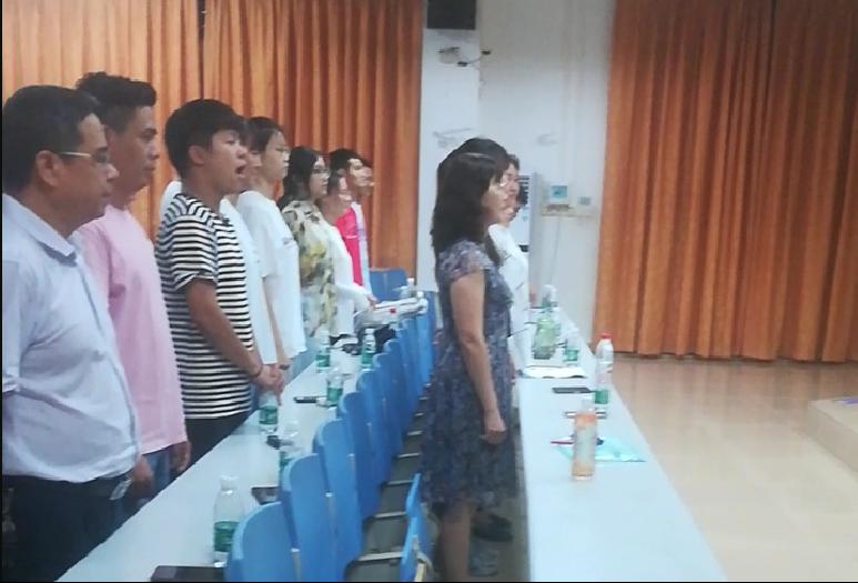 保卫黄河的曲目激情飞扬,难度高,易院长请来海南师范大学声乐系的耿伟老师团队帮助师生们排练,大家利用下午课后、晚上以及周末的时间,争分夺秒地进行排练。合唱队还分小组,每个同学都要通过测试,学会唱比赛的曲目,还要分声部,进行合唱。大家都从不会唱,到很娴熟,很洪亮、有感情地唱出曲目,这其中离不开院领导的严格要求,也离不开教练团队的辛勤汗水,记不清多少次的矫正声调、速度、音量,教练团队给同学们上了一堂堂精彩的音乐课。为了向党的生日献礼,大家都能克服困难,斗志昂扬地进行练歌,就是要唱出唱出基础人的精、气、神!