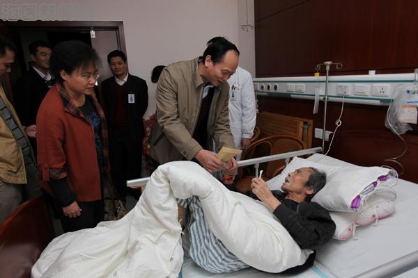 1 月9日 下午,学校党委书记廖小平与党委办公室、组织人事部、宣传新闻部、工会等有关负责同志前往附属医院,看望并慰问了学校原党委书记凌炽星、附属医院护理部原副主任鲁缀香、校务委员余丽等同志,向他们送上了鲜花、礼品和慰问金,送去了学校党委和领导的关心与祝福。