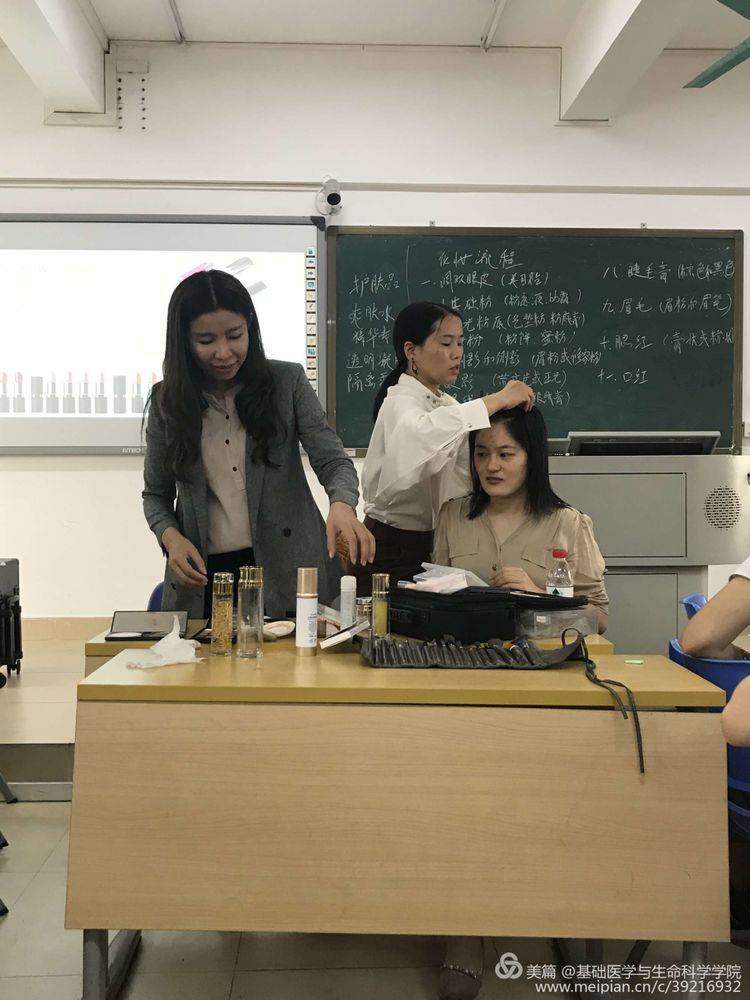 美妆老师邀请一名学员做模特进行实际操作