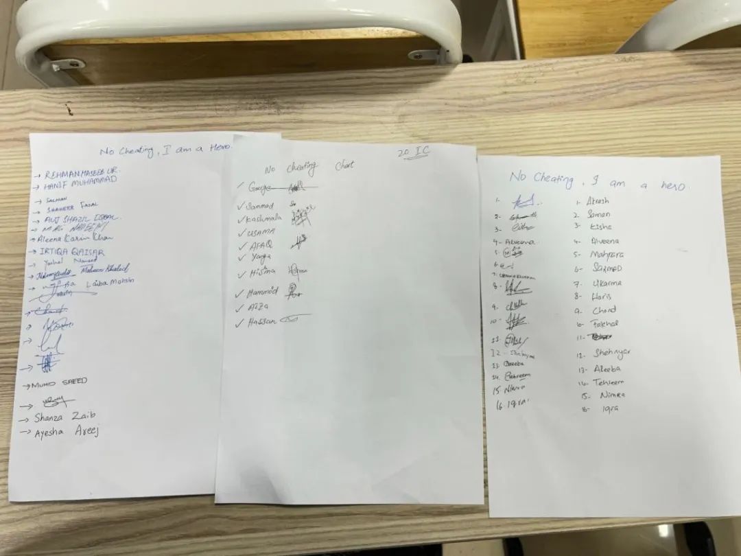 党政办公室的王亚丹老师鼓励同学们做好新学期的学习规划,要求同学们自觉遵守校规校纪,规范自己的言行,拒绝考试作弊,以更好的规则管理意识迈入新学期。李海同学激动地说:“最近在校园里听到最多的声音就是考试不作弊,最近学校在组织考试,抓考试纪律,我们班马上毕业了,从没有发生同学作弊的情况。通过这次班会,我们又一次强化了诚信考试的意识。”在班长们的号召下,全体同学积极参与,在“我不作弊,我是英雄”的承诺纸上郑重地签上自己的名字。