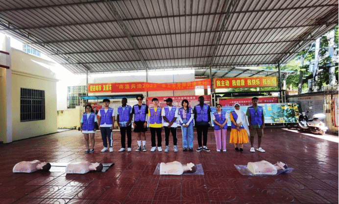 为了普及急救知识,强化渔业从业人员安全生产意识,提升渔民应急救护能力,2023年7月8日,海南医学院国际教育学院“医暖东方”三下乡团队前往东方市感城镇扶室社区进行溺水安全教育宣讲和心肺复苏的培训,将最实用的应急技能带给广大居民。扶室社区党支部书记吴赞玲带领广大社区居民热情地迎接我们的到来。