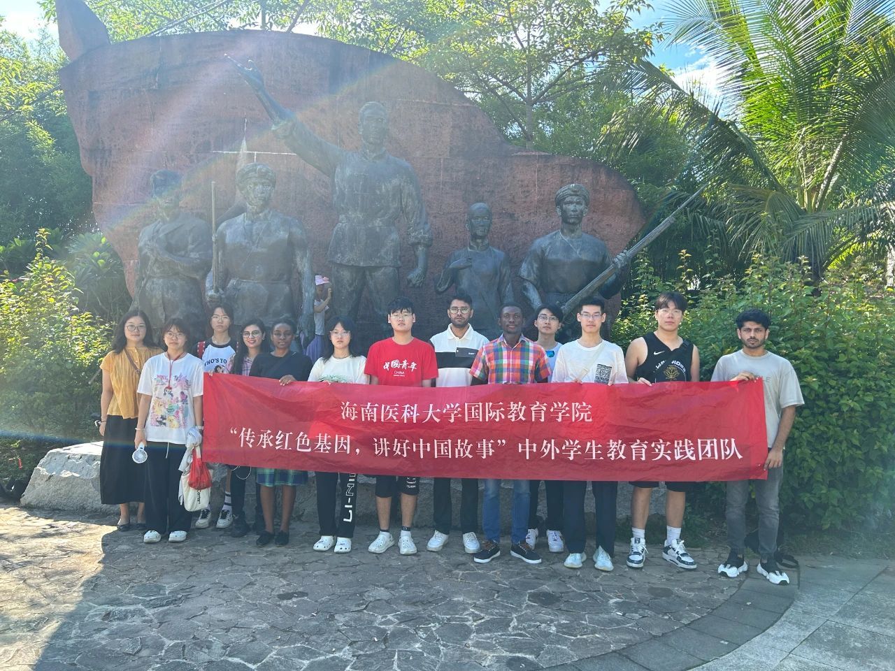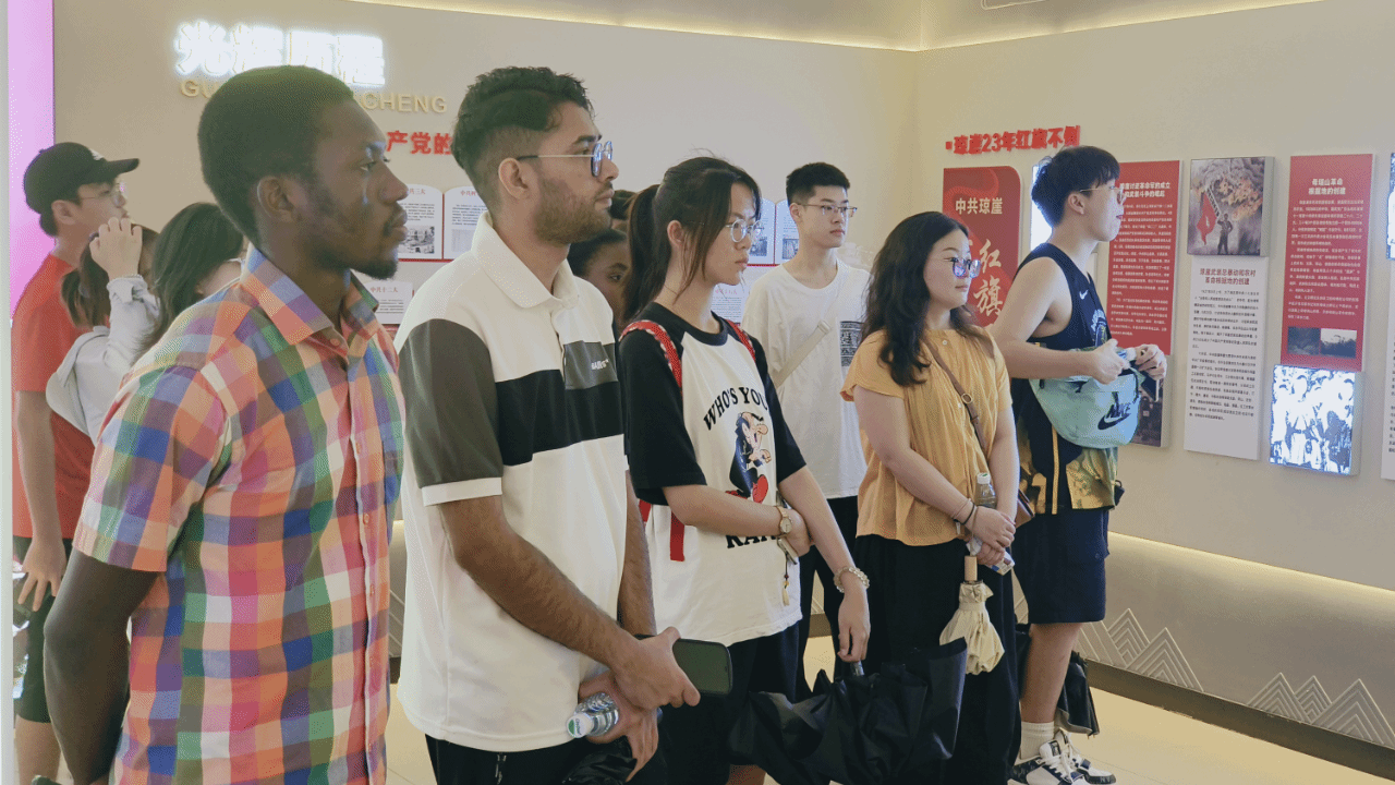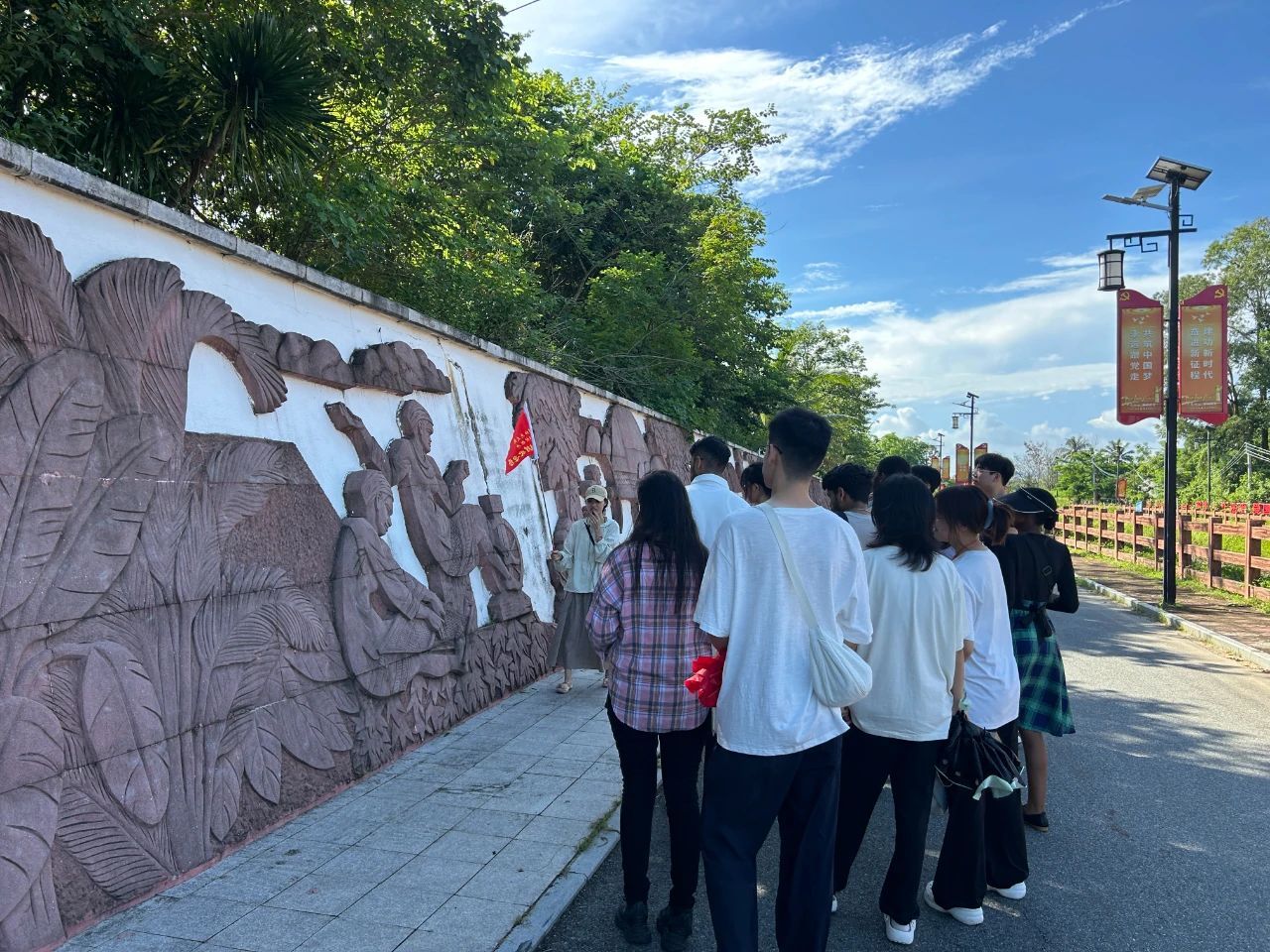 7月12日,“传承红色基因,讲好中国故事”中外学生教育实践团队一行来到陵水坡村,在讲解员的带领下实地参观学习了党建文化展厅、星火长廊、革命广场、坡村百米浮雕、黄振士公园、黄振士展室等地,聆听革命英雄的光辉事迹,了解新时代新坡村的发展变化,学习和感悟伟大革命精神。