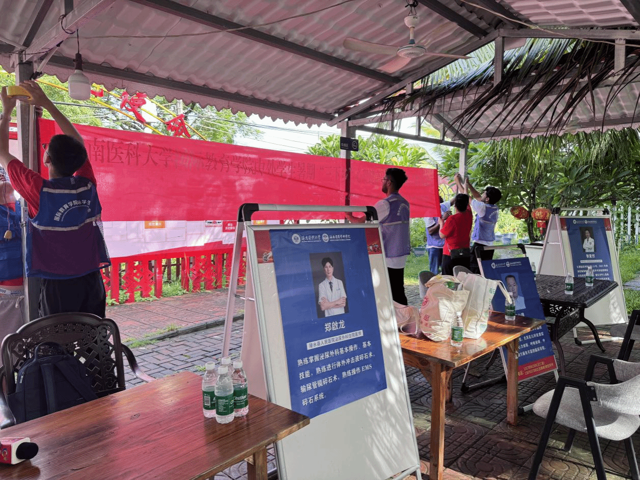 爱心义诊活动地点设在坡村村委会小广场。早上八点,“传承红色基因,讲好中国故事”中外学生教育实践团队早早抵达坡村村委会。中外学生互相配合,认真有序地做好活动前的准备工作。