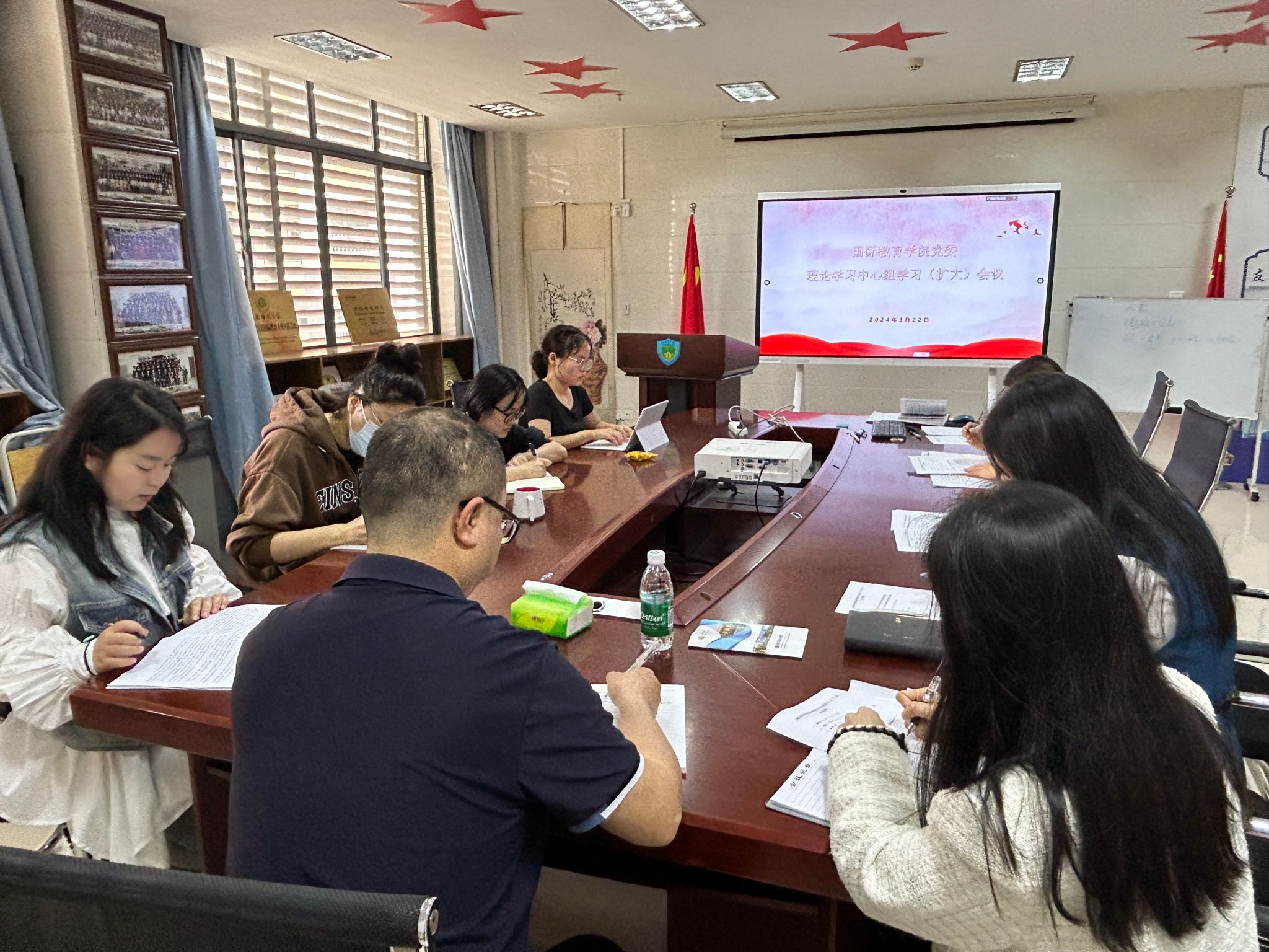 3月22日,国际教育学院召开党委理论学习中心组集体学习研讨(扩大)会议,专题学习习近平总书记关于党的自我革命的重要思想。学院党委书记张万科主持会议。
