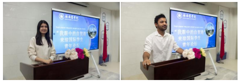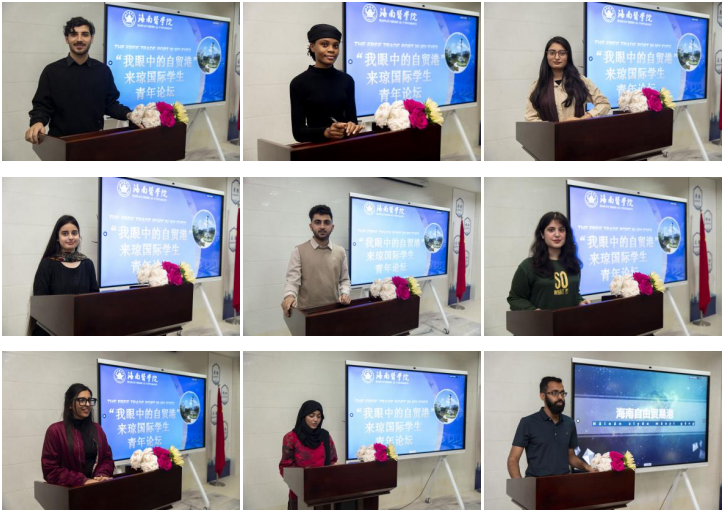 接下来,来自海南医学院国际教育学院的11位优秀国际学生代表围绕“我眼中的自贸港”主题进行发言,用一个个精彩的故事,从学习到生活的方方面面,表达对海南的热爱之情以及对海南自贸港建设的期待。