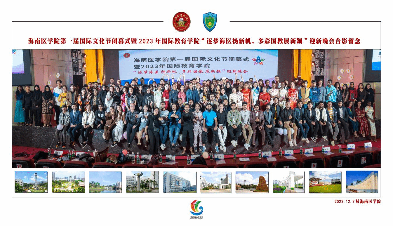 海南医学院第一届国际文化节自11月25日启幕,精彩纷呈的节目包含开幕式、游园会、国际学生十佳歌手比赛、志愿服务活动周、青年论坛与对话,至迎新晚会高潮落幕,提升了国际学生对中华文化、海南文化的了解程度,也展示了各个国家的文化传统、民族风情、特色艺术品和美食,展现了学校和衷共济、和合共生的校园文化。