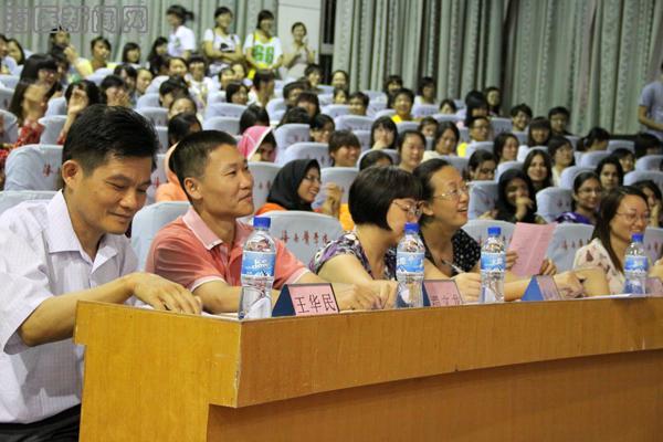 学校校务委员李群教授、学生工作部副部长余伟新、海南省人民医院医生徐志泉、陈金妮等应邀观摩比赛;国际教育学院王华民院长、海口市公安局出入境管理处禤文龙处长、吴鹏程科长、学校外部联合党总支郝美娟副书记、外语部窦岩副主任、药学院教师刘月丽和对外汉语教师郭亚丽等担当比赛评委。