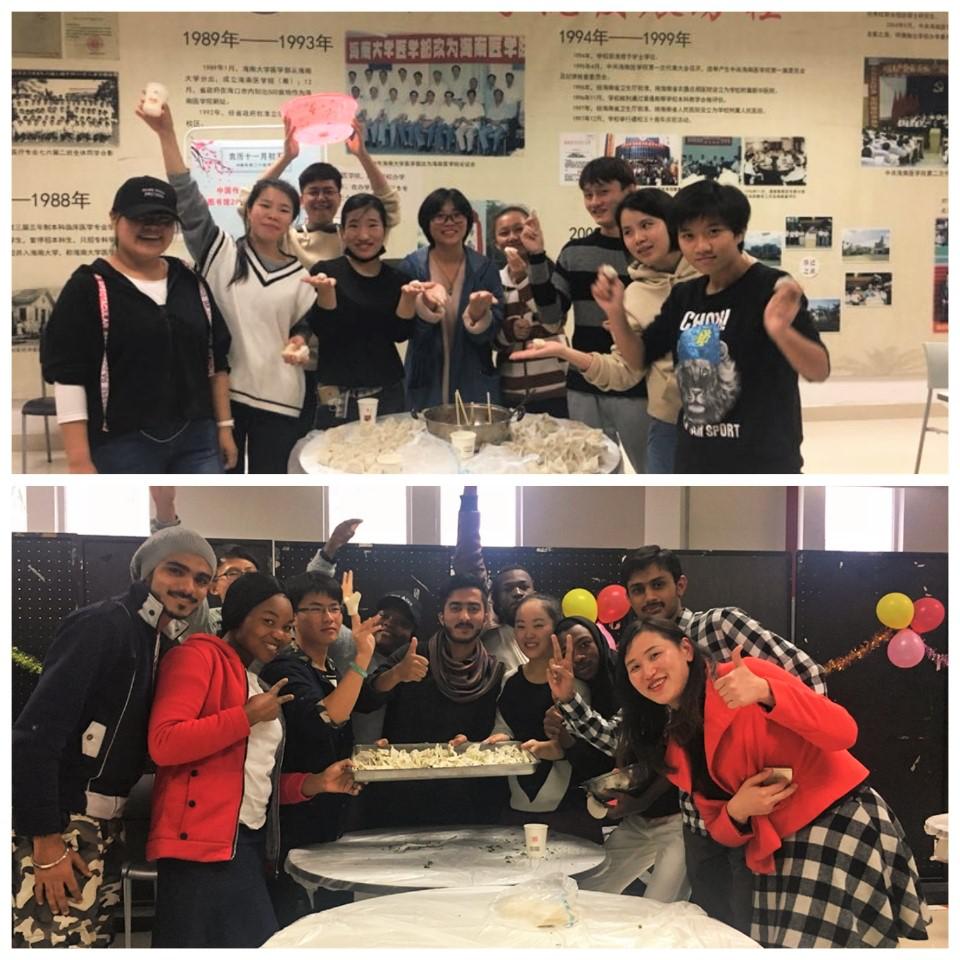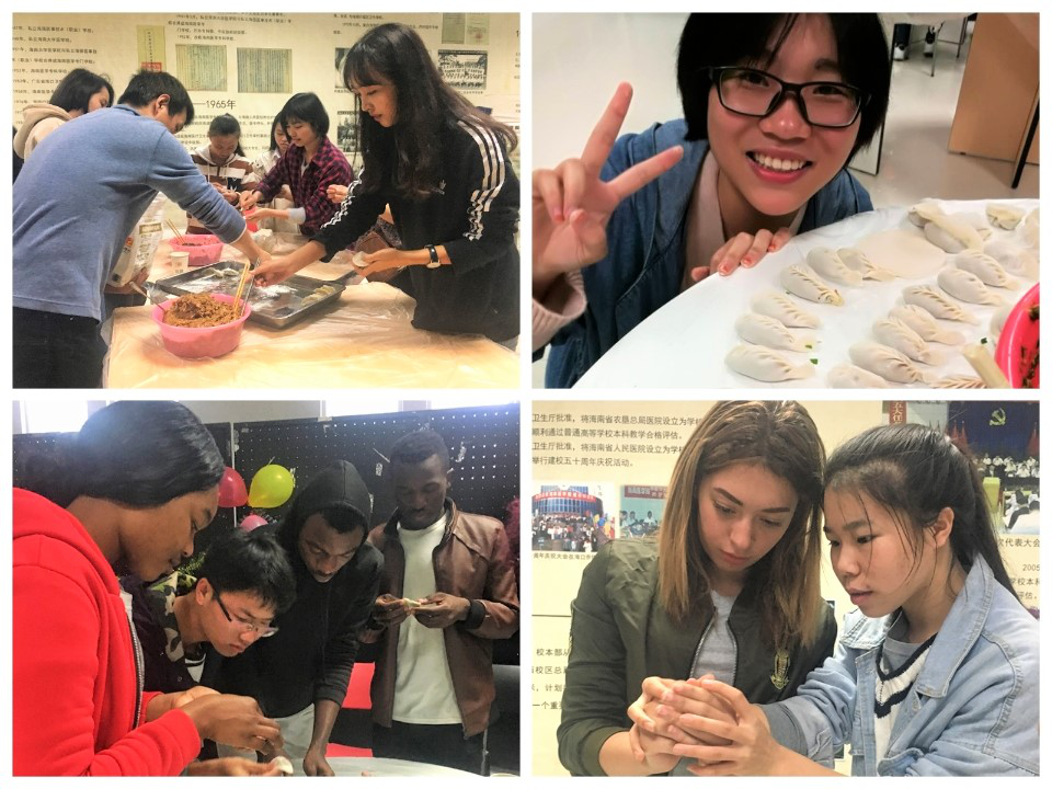 我院留学生认真包饺子