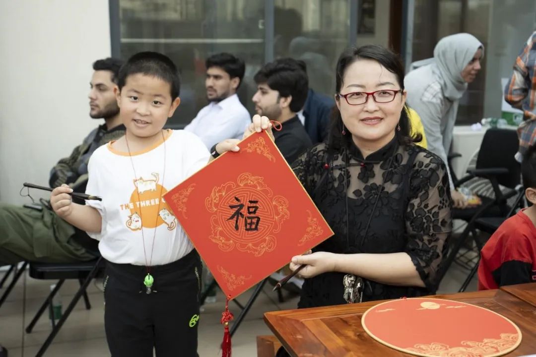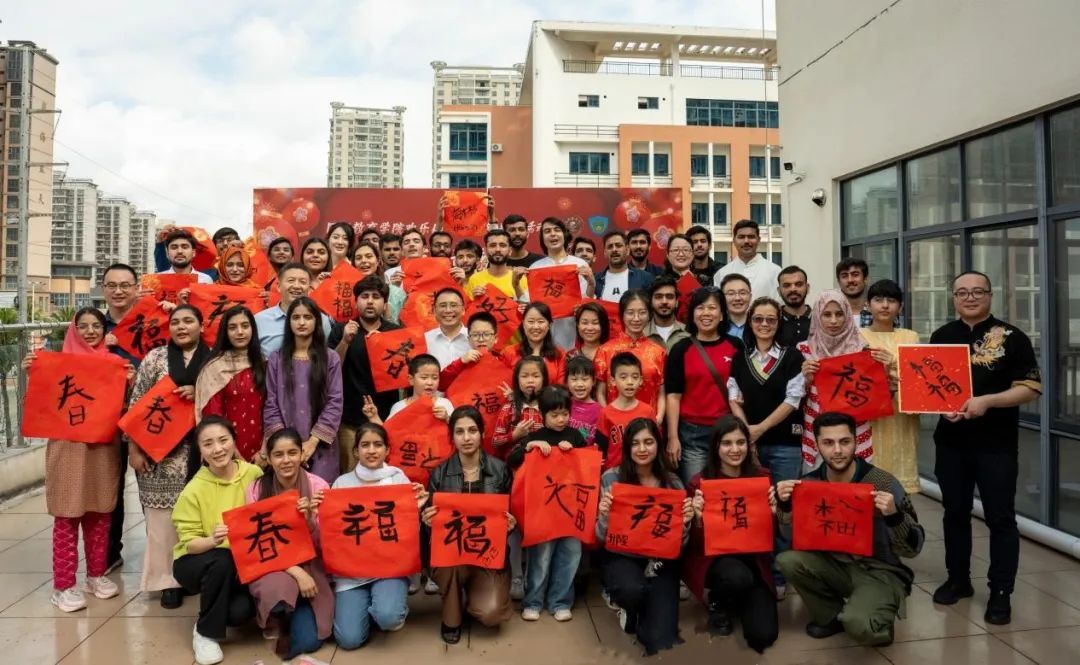 “写春联,送福字”新春祝福向未来。来自职工书法协会的黎同柏和徐海波两位老师,指导大家采用正确的毛笔握笔姿势,书写春联和“福”字。现场的国际学生、教职工及其子女们认真聆听讲解、挥毫泼墨,开心快乐地进行展示、分享和交流,感知汉字之美、书法之意境、春联之祝愿,以及“福”倒好运到。