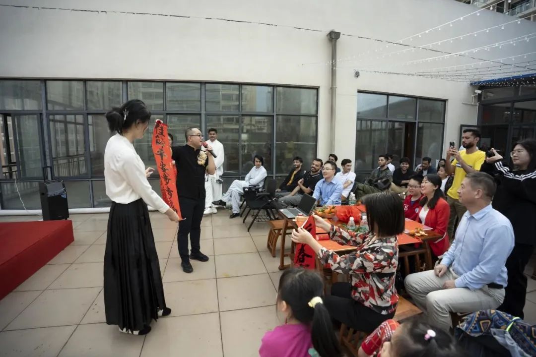 春节文化小讲座细细道来。国际教育学院董东栋老师从春节的历史和由来、“中国红”“过年”及“春联”的寓意等方面开展文化专题小讲座。“红色”象征着春节的喜庆和热闹氛围,也寓意着好运和吉祥;过年和贴春联表达了美好期盼,大家齐声朗读“新春富贵年年好,佳节平安步步高”,寄语“新春大吉”。