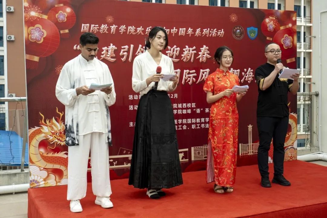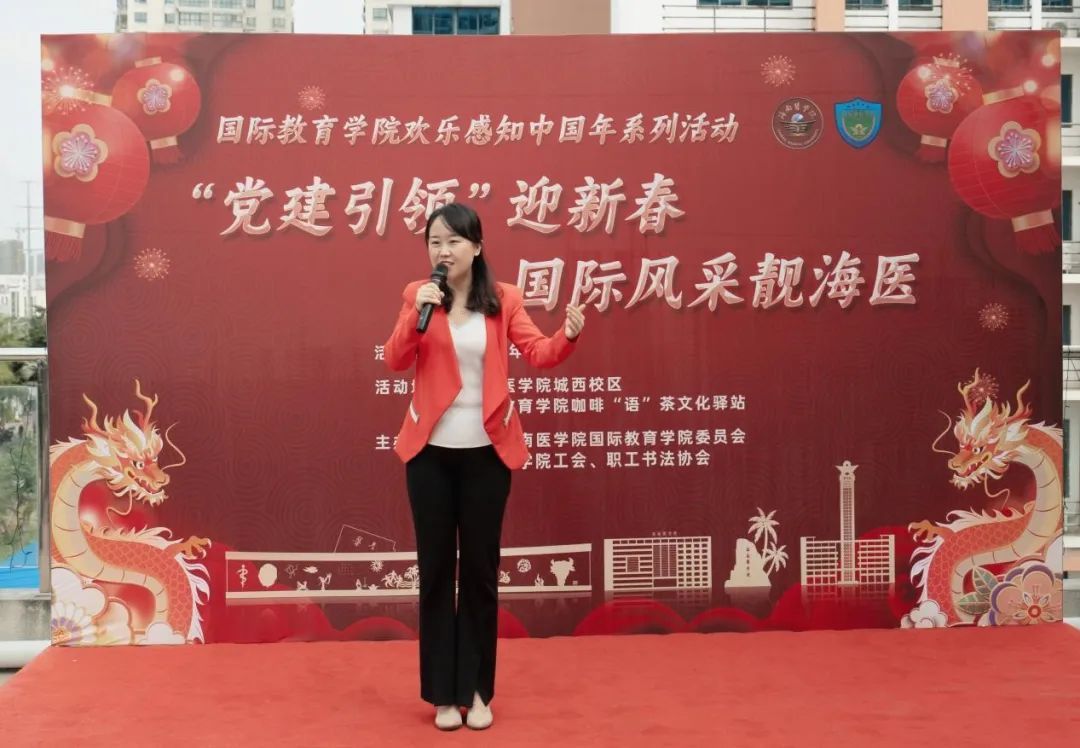 开幕式致辞展情怀。海南医学院副校长李现红表示,中国年和“中国红”,是中华文化的重要组成部分,它承载着丰厚的历史底蕴,展现独特的中华民族精神。在这样重要的时刻,我们不仅是庆祝农历新年的到来,更是在传承和弘扬中华优秀传统文化。欢乐感知中国年系列活动,也让国际学生更好地感知中国,感受春节魅力,深入了解和体验中华文化的博大精深。