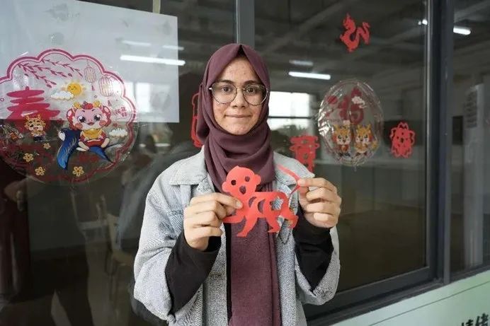 “谢谢您老师,我要把我的剪纸作品贴在宿舍门上。”来自20临本国际班的科摩罗学生何玲珑说,“我还要拍照给家人看,中国的春节活动非常地丰富多彩。”