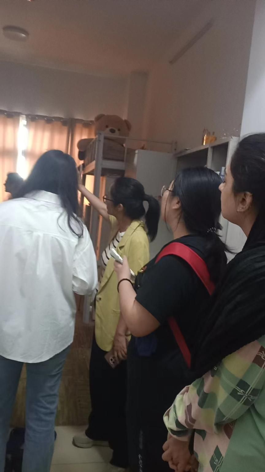本次检查走访重点检查了六期学生公寓6楼、7楼、9楼、10楼、13楼的国际学生宿舍,主要内容为宿舍安全隐患排查、宿舍卫生检查、楼道内公共区域卫生情况检查等。在强调安全使用各类用品的同时,各位老师也对学生的学习和生活进行询问,嘱咐同学们要丰富假期生活,科学合理规划时间,做到劳逸结合。