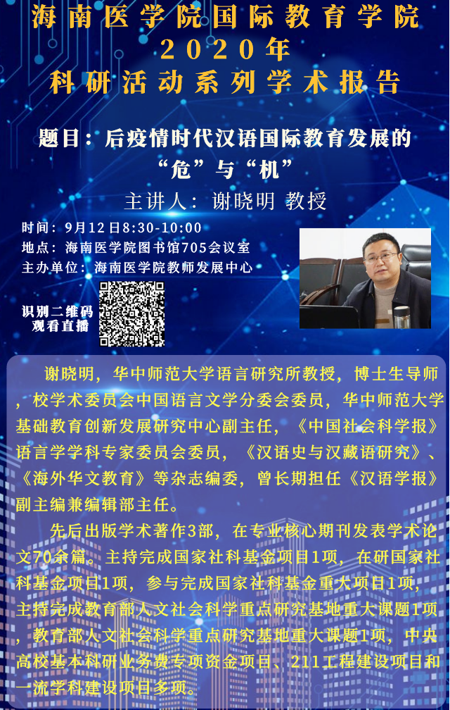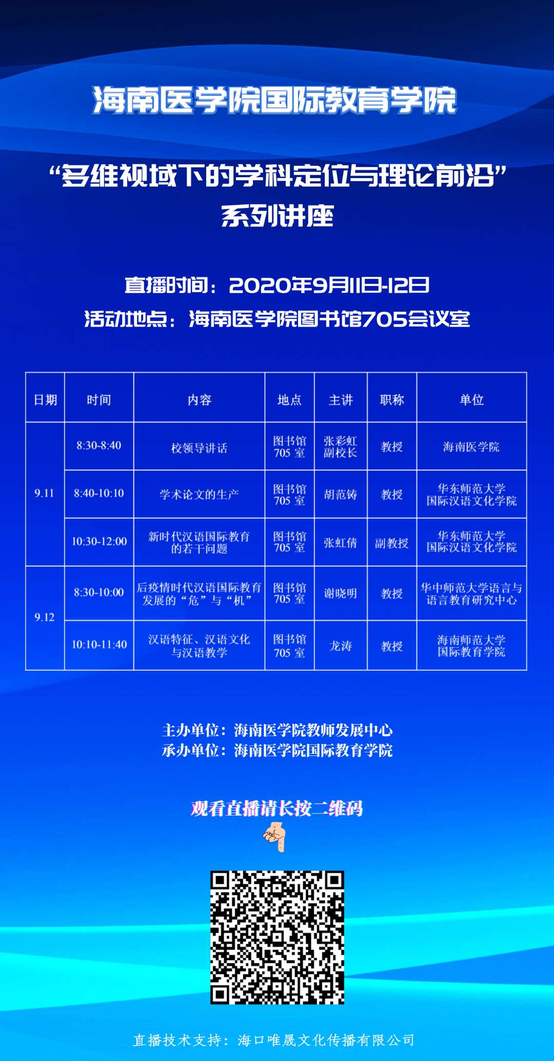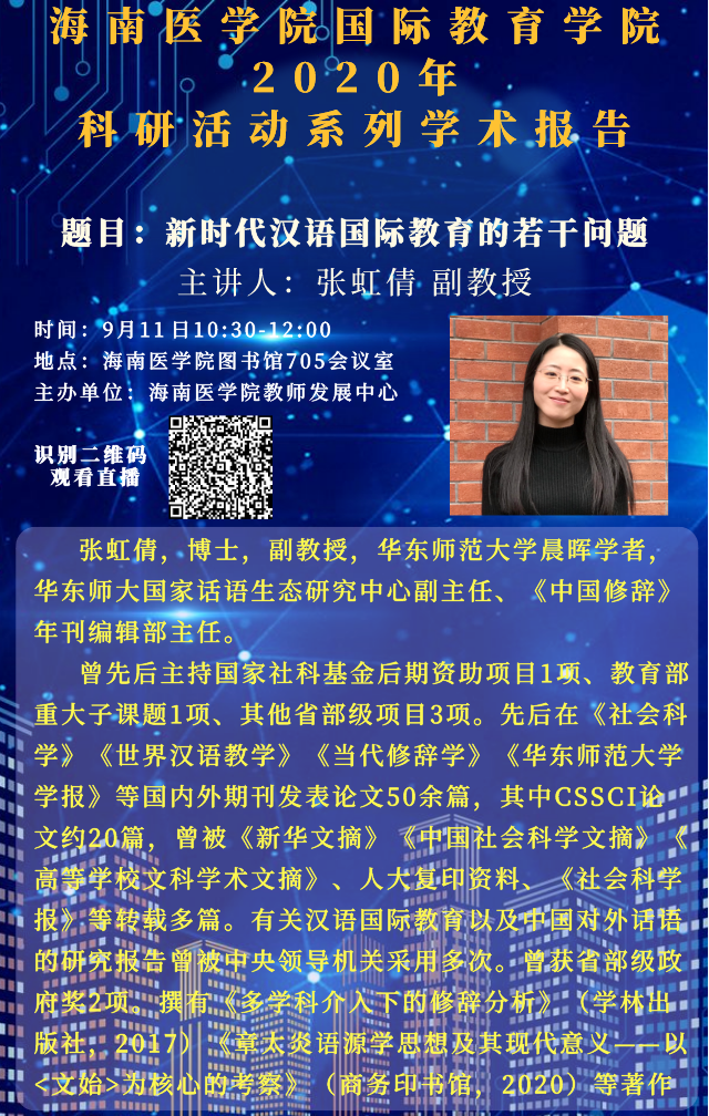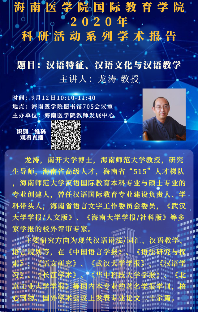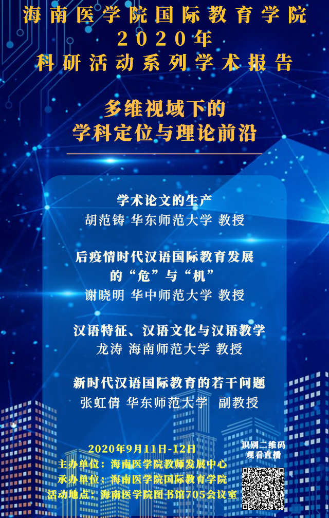 海南医学院国际教育学院2020年科研活动系列学术报告-多维视域下的学科定位与理论前沿