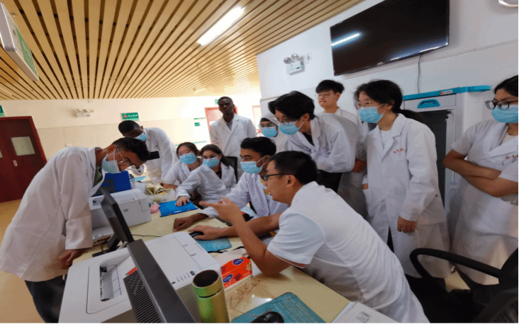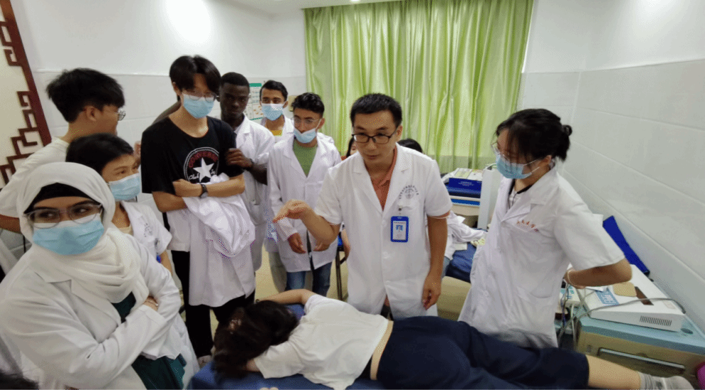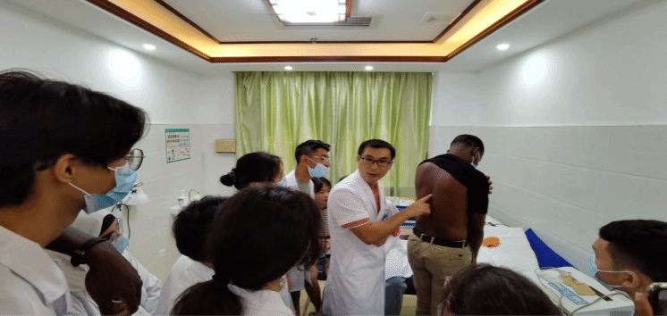 接下来,进入最重要的环节——病房查房。院长给住院病人查体、询问、检查、把脉,并进行中医会诊。其中非常神奇的一点是,他用把脉的方式进行检查,在我们见习过的医院病房里极少见,这何尝不是一种在基层推广中医学,加大中医药文化传播力的实践呢?这种中西医结合的方法给我们一行中外医学生很多启示,连镇上的基层医院都能用中医来进行治疗且治疗接受度还挺高,我们是不是也可以在西药无法治疗或是治疗副作用太大时,尝试使用中医疗法呢?