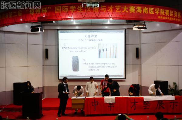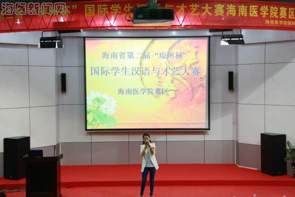 2013年11月16日晚,海南省第二届 “琼州杯”国际学生汉语与才艺大赛海南医学院赛区竞赛在taptap点点多功能报告厅成功举行,此次比赛由海南省教育厅主办,taptap点点承办。海南省教育厅国际合作与交流处张超处长、海南医学院曾渝副校长、国际教育学院王华民院长作为嘉宾出席此次比赛。校团委符琬聆书记、外语联合党总支郝美娟副书记、外语部符祝芹副教授、国际教育学院姜冬梅老师及校学生会副主席阿茹娜同学应邀担任本次比赛的评委。