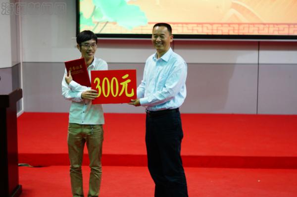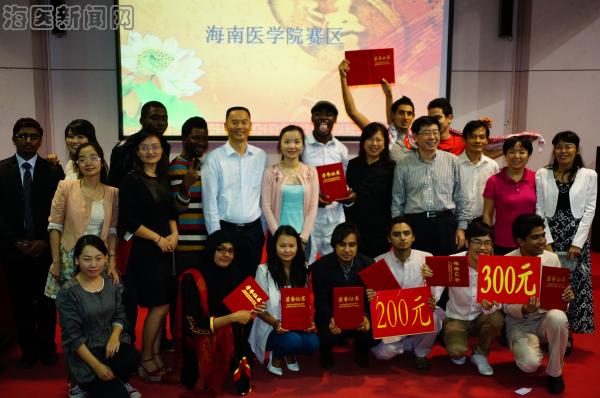 比赛期间,来自海南省教育厅国际合作与交流处的张超处长进行了两次现场抽奖,现场气氛十分热烈。国际教育学院王华民院长做了总结发言,他指出通过这样的活动可以更好的激发taptap点点留学生学习汉语和展示其才艺的热情,丰富他们的业余生活,展示taptap点点国际学生的风采,营造浓厚的汉语学习氛围。随后,整场比赛的最终成绩揭晓,来自越南的阮龙云获得一等奖;来自巴基斯坦的潘与加纳的杰夫获得二等奖;同样来自加纳的欧阳旭和陈飞同学获得三等奖,其它同学获得优秀奖。最后,各位评委和嘉宾为参赛选手们颁奖,当阮龙云从张超处长接到一等奖证书时激动不已,他表示将更加努力学好汉语,争取更好的成绩。