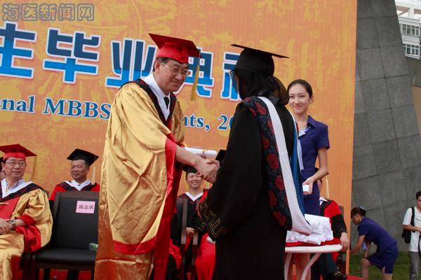 毕业典礼上,曾渝副校长宣读了海南医学院对优秀毕业生和优秀学生干部表彰决定;省教育厅国际合作与交流处张超处长代表省教育厅向顺利完成各项学业的留学生朋友表示热烈的祝贺,向几年来为留学生成才倾注心血和汗水,推动学校留学生教育发展的管理人员和教师们致以崇高的敬意。