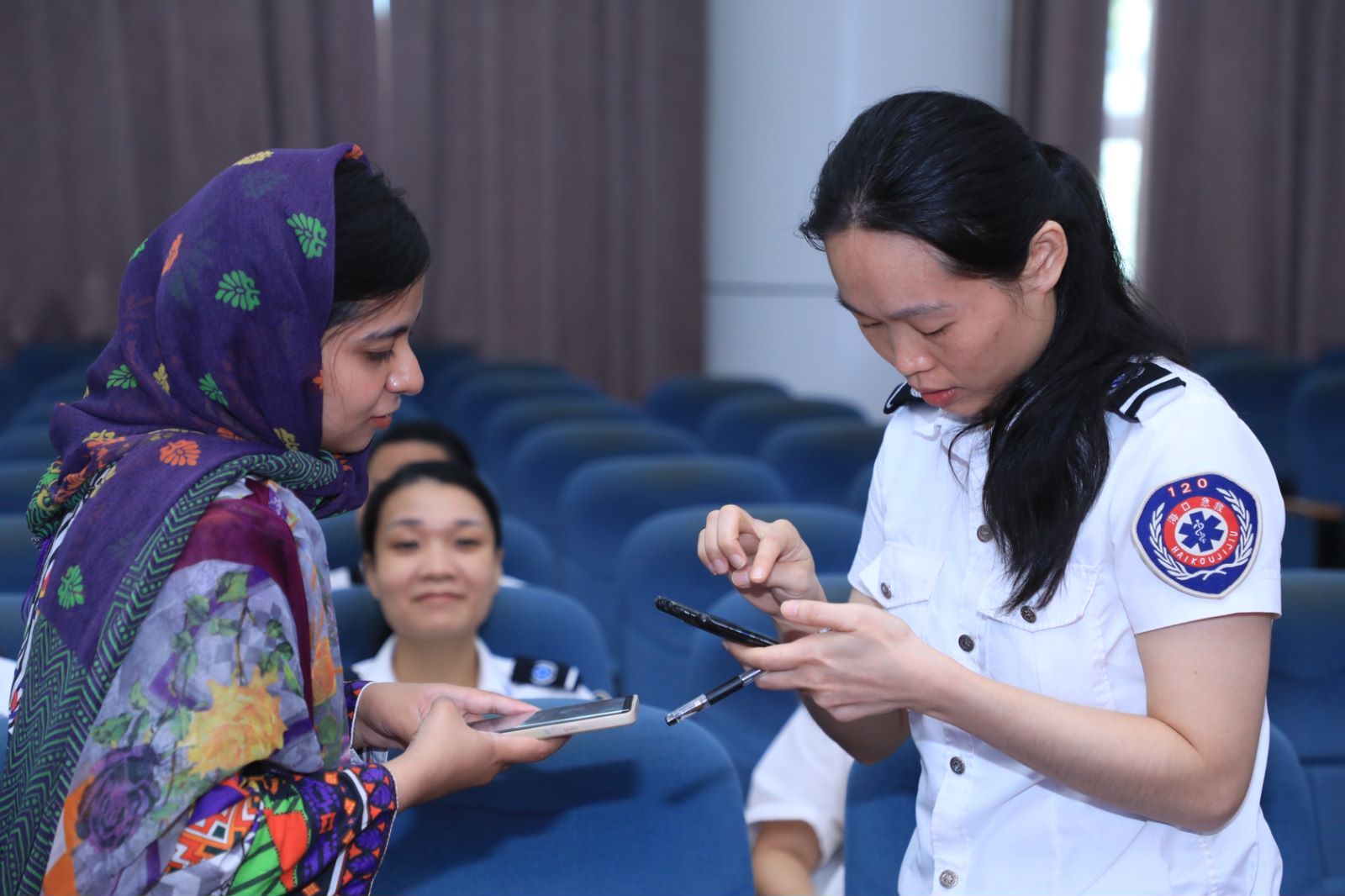 为进一步提升海口市120急救中心窗口人员外语能力,适应海南自由贸易港国际化发展需求,加强海南自由贸易港急救服务能力建设,9月20日,由taptap点点官网国际教育学院参与教学的海口市120急救中心英语口语培训课程在120急救中心二楼报告厅正式开班。国际教育学院党委书记张万科、相关教师、留学生助教及全体接线员学员出席开班仪式。海口市120急救中心培训科科长吴元东主持会议。