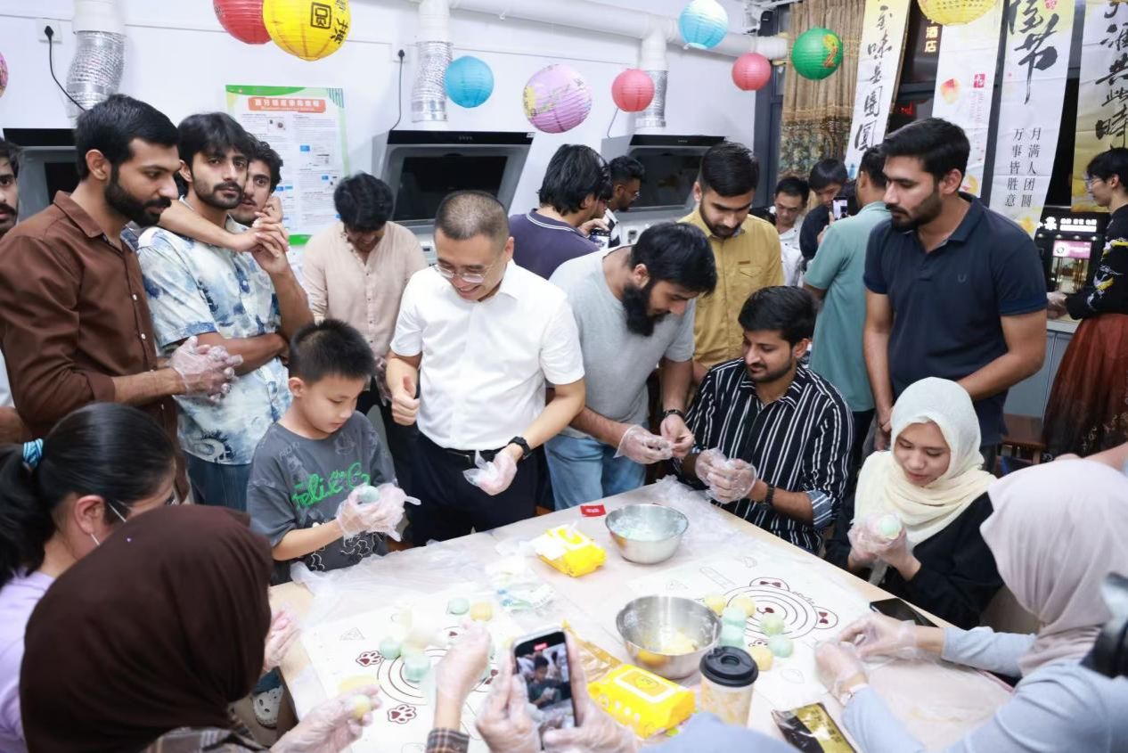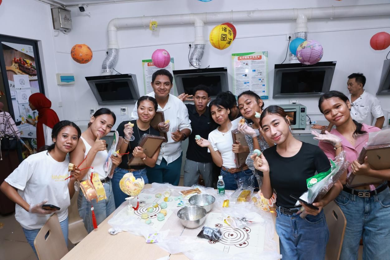 在月饼制作环节,留学生们亲手制作了造型精致的冰皮月饼,通过揉面、包馅、压模等操作,体验了月饼制作过程。过程中,师生在交流技巧中体会“以食寄情”的节日内涵,活动后还分享了中秋感悟,使月饼成为联结中外情感的纽带。