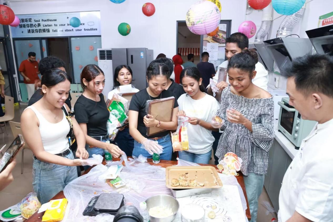 东帝汶学生品尝自己烤制的琼式月饼