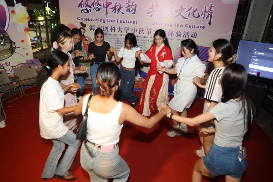 之后,各国留学生积极主动地上台表演来自家乡的音乐和舞蹈,东帝汶学生带来的一支活泼的圆圈舞将气氛推向高潮,随着欢快的节奏围成同心圆旋转跳跃,欢声笑语随舞步飞扬,现场沉浸在节日欢愉中。