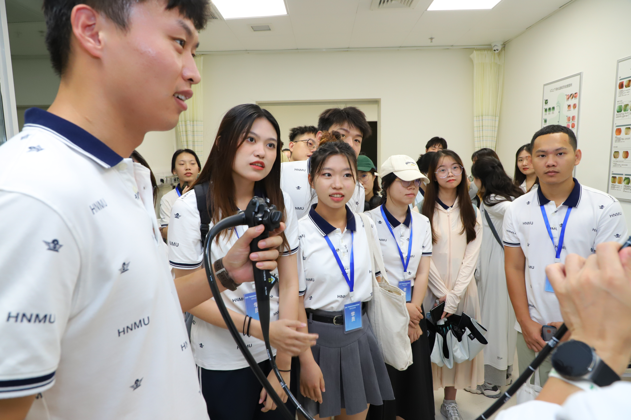接着学员们参观了瑞金海南医院的内镜中心,系统地了解了各种内镜检查和治疗。通过老师的讲解和同学们沉浸式的学习,对医院最神秘的部门ICU也有了深入了解。最后同学们来到手术室,学习了手术室的管理,先进的医疗设备如第五代达芬奇机器人,还有杂交手术室等内容,拓宽了视野。来自青岛大学的徐晓函同学说:“这次活动让我了解到博鳌医疗先行区的政策、优质医疗资源等,也促使我更加坚定地在将来从事护理临床工作,更好保障人民生命安全和身体健康,为健康中国贡献更大力量。”