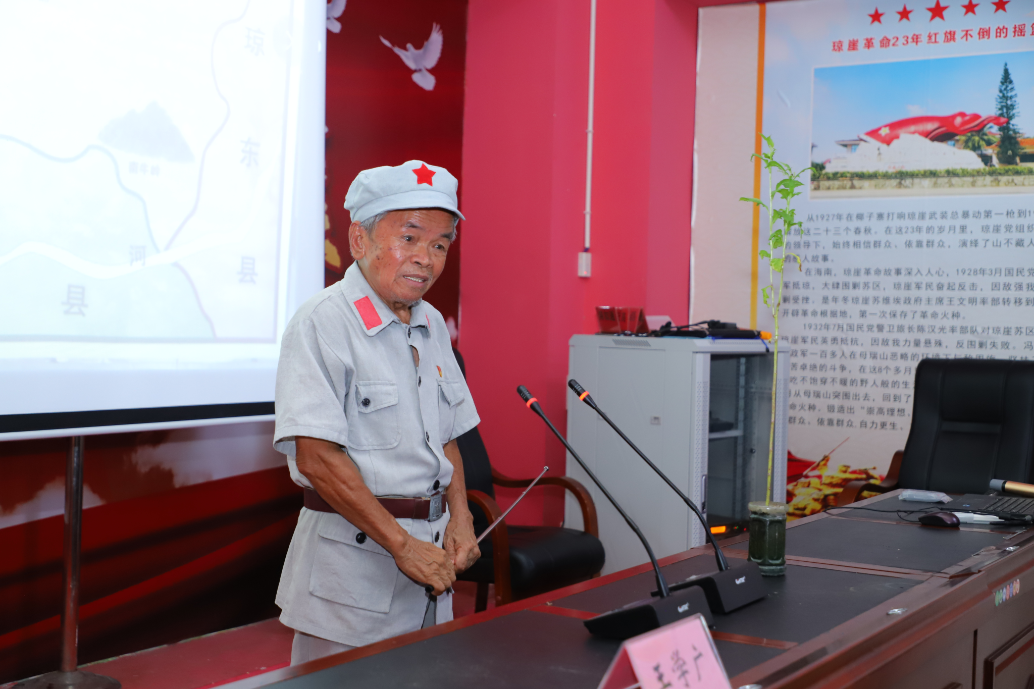 上午,夏令营师生首先来到了被誉为“琼崖革命的摇篮”的母瑞山革命根据地纪念园。86岁的老馆长王学广同志带领学员们在人民英雄雕像前重温入党誓词,瞻仰革命先辈并致敬。