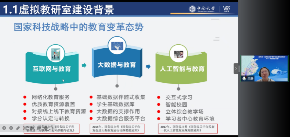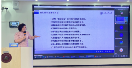 医学类虚拟教研室学科协作组秘书、首都医科大学宣武医院教务处副处长朱庆双副教授在线上介绍了首都医科大学虚拟教研室的建设背景、进展与成效等,分享了建设打造“智能+”时代新型教师教学发展共同体等内容,为教育部沿海区域护理专业虚拟教研室的建设提供了重要的参考。