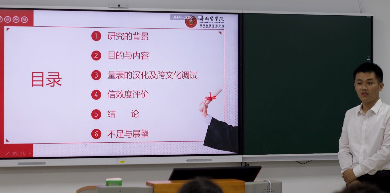 在这个充满希望与收获的毕业时节,海南医学院国际护理学院于2024年5月30日隆重举行了2021级硕士研究生学位论文答辩会,本次答辩会分三组分别在筱海国际教育大楼803(第一组)、804(第二组)和805(第三组)以现场答辩的形式举行。