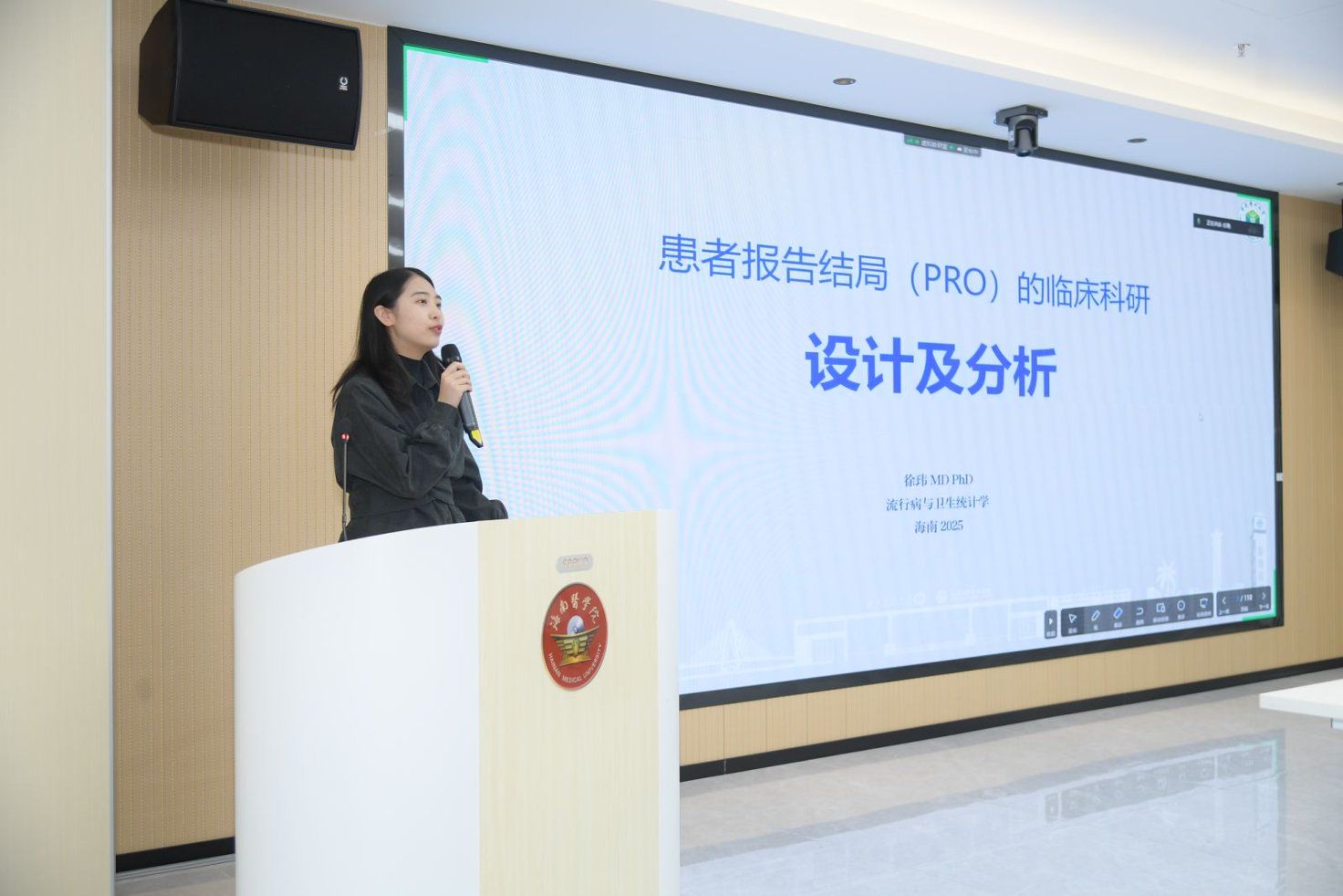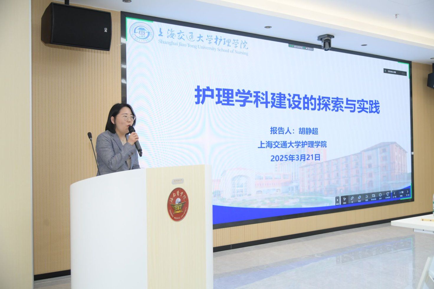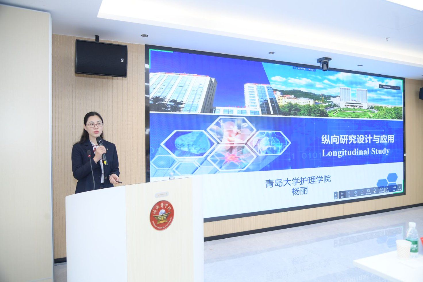 青岛大学护理学院院长杨丽教授以“纵向研究设计与应用”为主题,结合其主持的国家自然科学基金项目成果,系统解析了纵向研究在老年慢性病管理和青少年癌症中的应用路径。她通过简述自身团队的课题的研究为案例,展示了数据驱动下的精准护理干预模式,并强调“长期追踪与多维度评估”对提升护理科研质量的关键作用。南京医科大学护理学院副院长嵇艳以“学科筑基·专业领航:南京医科大学护理学专业建设的守正创新之道”为主题,提出了高等教育中,学科建设以科学研究为核心夯实理论根基,专业建设通过社会服务与人才培养精准对接国家战略需求与职业发展导向,二者协同共进,形成“知识创新驱动实践应用、实践反馈反哺学科深化”的闭环体系,推动教育质量提升、社会价值实现与人才可持续发展。重庆医科大学流行病与卫生统计学徐玮博士以聚焦“基于患者报告结局的临床科研设计”,结合其在发表的SCI论文成果,深入探讨了PRO工具在乳腺癌症状管理中的应用以及指南的解读。他提出“模块化PRO评估体系”,通过智能终端实时采集患者数据,为个性化护理方案制定提供科学依据,现场展示了患者报告结局的案例。上海交通大学护理学院科研与学科发展办公室主任胡静超以“护理学科建设的探索与实践”为题,分享了上海交通大学护理学院的护理教育评价与学科建设领域的前沿成果。以及人才的培养体系,教育教学的改革,积极搭建国内外交流平台,拓展科研的合作,帮助学生拓展视野,进行更全面的人才教育。