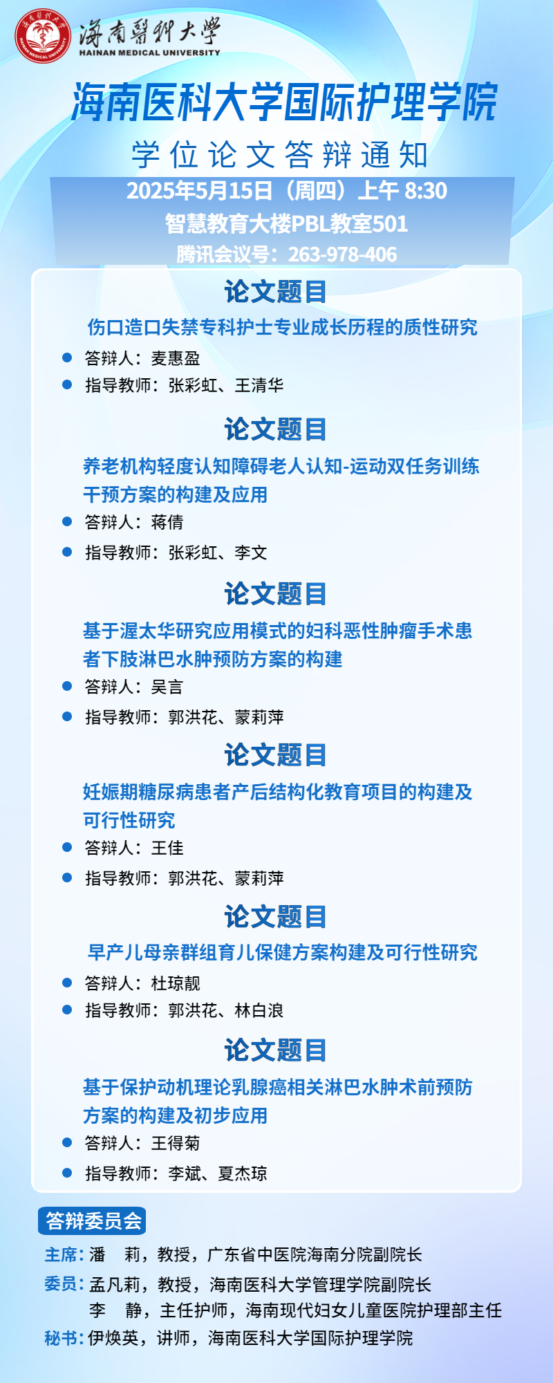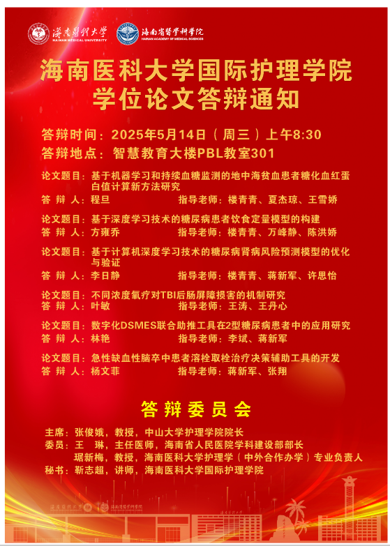 国际护理学院2025届护理研究生学位论文答辩通知