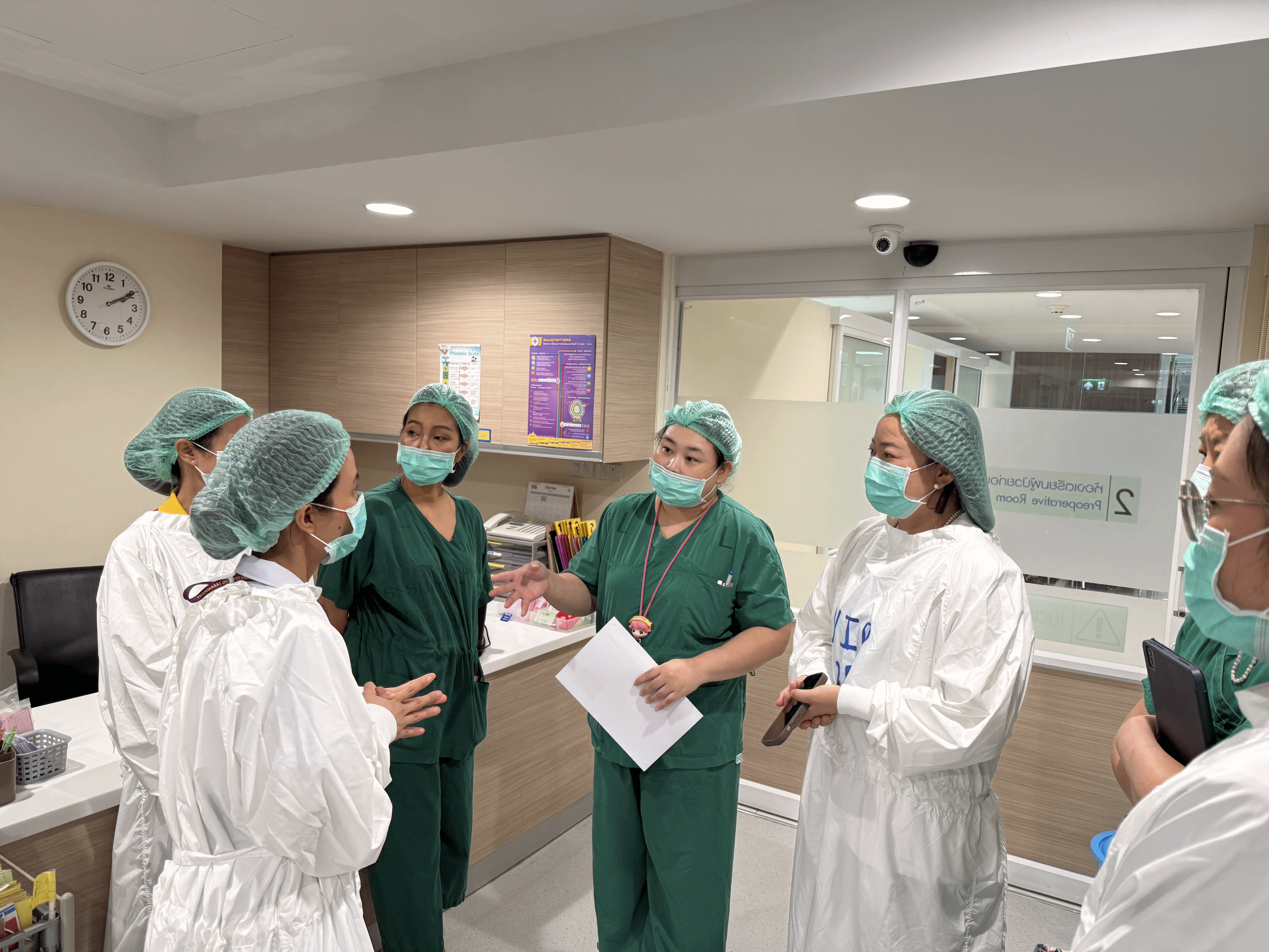 6月27日上午,在护理学院助理院长Natthananporn Sanguanklin副教授的陪同下,访问团前往Thammasat University附属医院进行重点参观。此次参观涵盖了智能血液透析中心(Smart Hemodialysis Center)、手术护理部门(Operative Care Unit)、皮肤专科门诊(Skin Clinic)以及儿童与青少年发展中心(Child and Adolescent Development Unit)等多个特色临床科室,两位老师全面了解泰方在智能护理、专科建设及临床教学等方面的先进经验与做法。