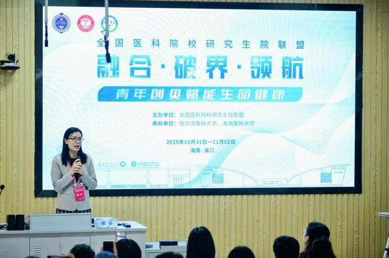 在学术报告环节,论坛学术氛围浓厚,研究内容精彩纷呈。来自哈尔滨医科大学的孙梦如、昆明医科大学的郭灕茸、安徽医科大学的王珠珠等研究生,先后报告了在季节性情感障碍与心血管事件关联、中草药抗骨衰老活性成分预测、肺癌合并肌少症患者体成分分析等前沿领域的最新研究成果,重庆医科大学的徐欣则从心身关联视角,深入探讨了口腔扁平苔藓患者焦虑对远期疗效的影响及机制研究。米洁教授对本组学生的汇报给予认可,均具有一定的前瞻性,建议在文章中写明研究框架,增加长期效果分析。