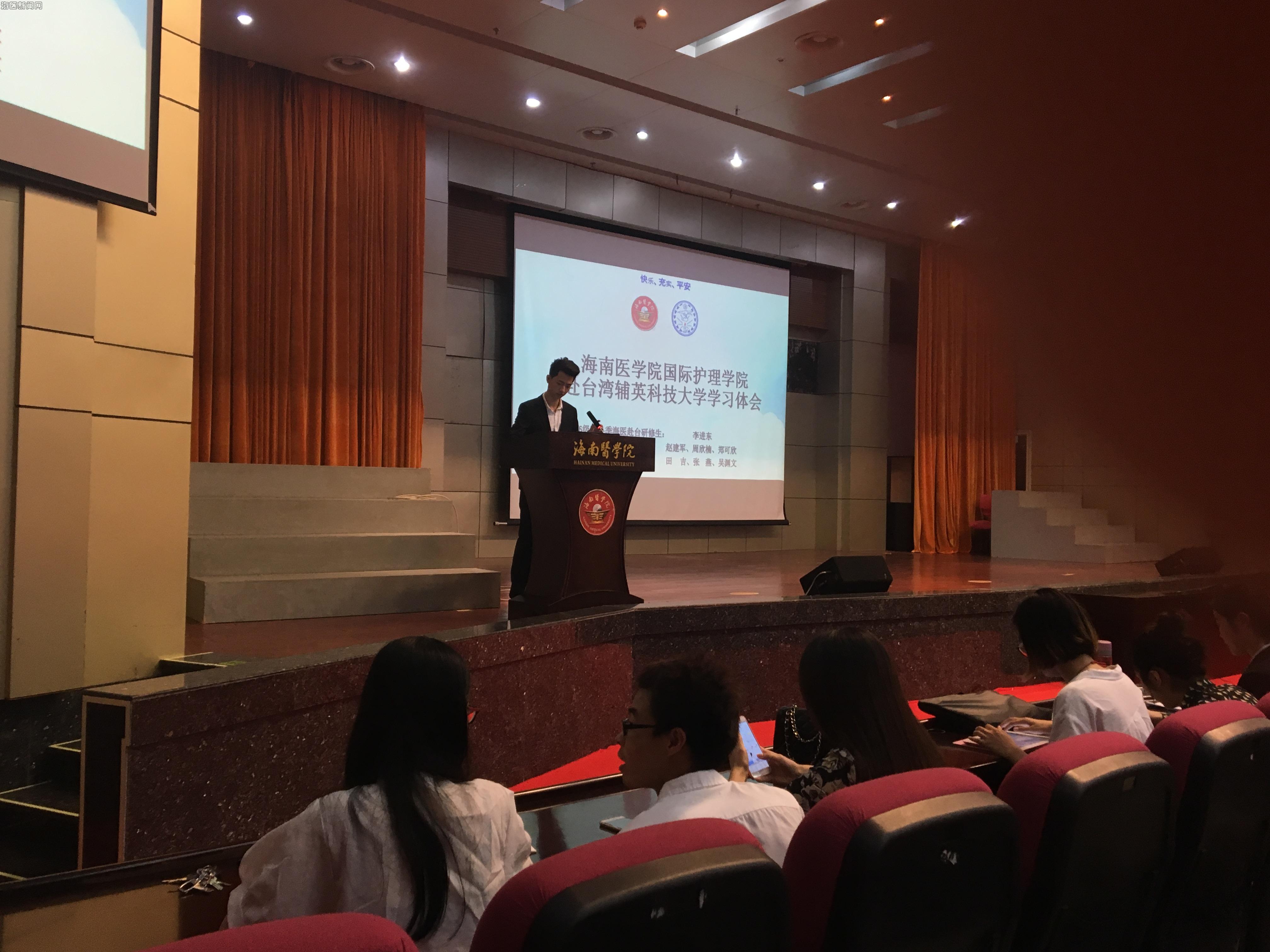 我院于2016年9月至2017年1月选派14级护理本科及15级护理专升本共7名学生赴台湾辅英科技大学学习。2017年3月15日晚7点,李进东等7名学生在国际报告厅举汇报了他们去台湾辅英科技大学的学习心得,并与参会的学生进行了互动交流。
