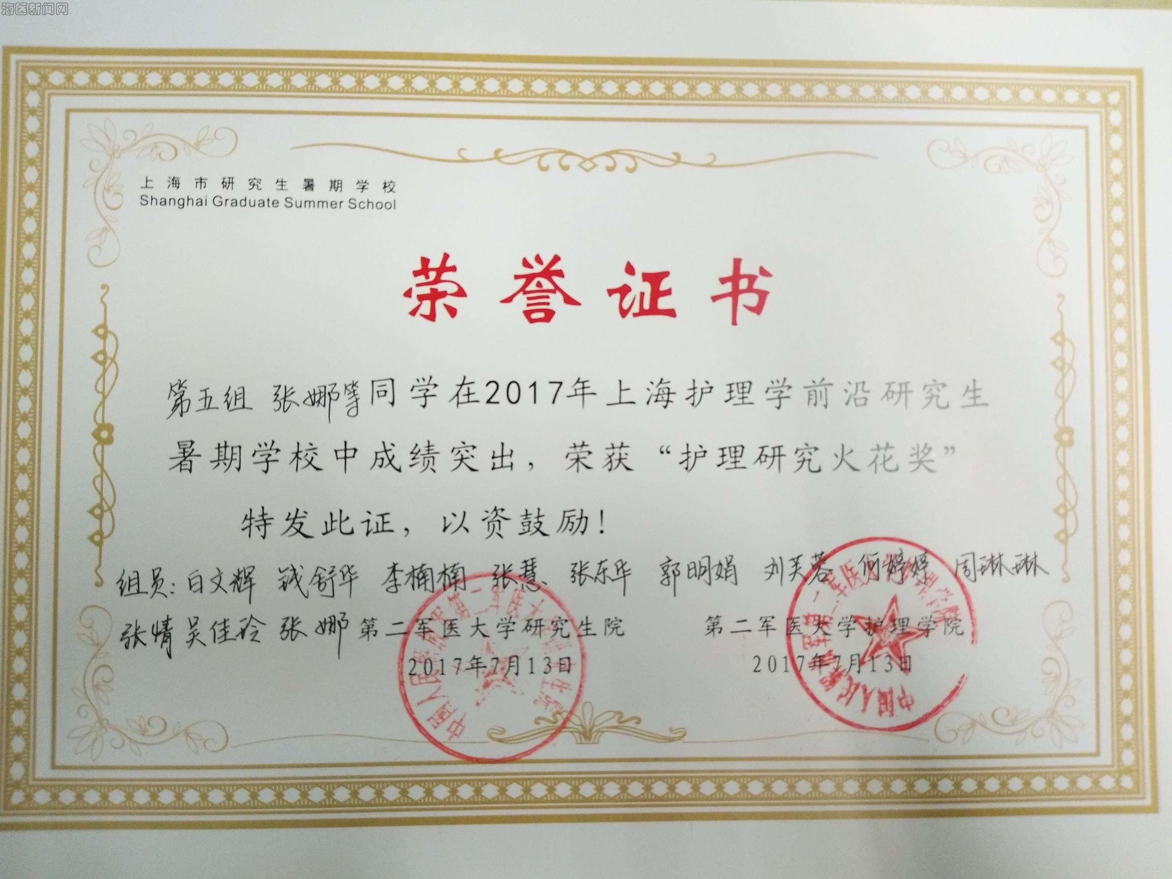 收获知识与感悟的同时,我不忘张彩虹院长临行前的那句话,“抓住机会多展示自己,为学校扬名”,在课间积极向教授讨教问题,与同学分享研究过程中的心得与体会,在科研汇报中清晰地阐述自己的研究,并经过评分获得“护理研究火花奖”,同时在最后的结业典礼中组织了“三句半”节目,把自己在暑期班的学习及生活的感悟全部包含在内,获得了大家的一致好评。