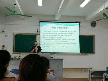 本次讲座的主要内容分为质性研究的基本理论与质性研究的科研设计两大部分。与会人员有国际护理学院张华院长、郭洪花副教授、张思琪及其他老师、国际护理学院全体研究生、部分本科生。首先,Shokoh教授声情并茂的讲解了质性研究的概念、优势与劣势、与量性研究的区别、以及如何保证质性研究的效度和可靠性,让大家深刻理解了质性研究的基本理论。再通过讲解现象学、人种学、扎根理论、历史学、行动研究这些方法论,指导大家进行质性研究的研究设计。最后,研究生们积极提问并与Shokoh教授一起探讨了关于质性研究在实施过程中遇到的具体困难与困惑。