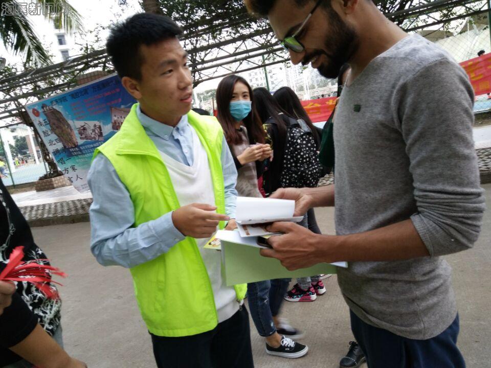 在活动中,学生会也为同学们提供各种咨询,针对同学们提出的关于艾滋病防治问题一一作答,就连外国友人都参与了进来。