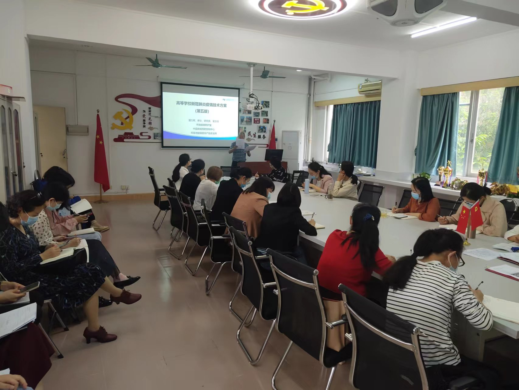 2022年4月21日上午,国际护理学院在综合楼北214党建会议室开展了第二场疫情防控知识学习与培训,由国际护理学院韩祥畴书记和王涛书记主持,解读《高等学校新冠肺炎疫情防控技术方案(第五版)》,并介绍了学校疫情防控技术方案有关情况。