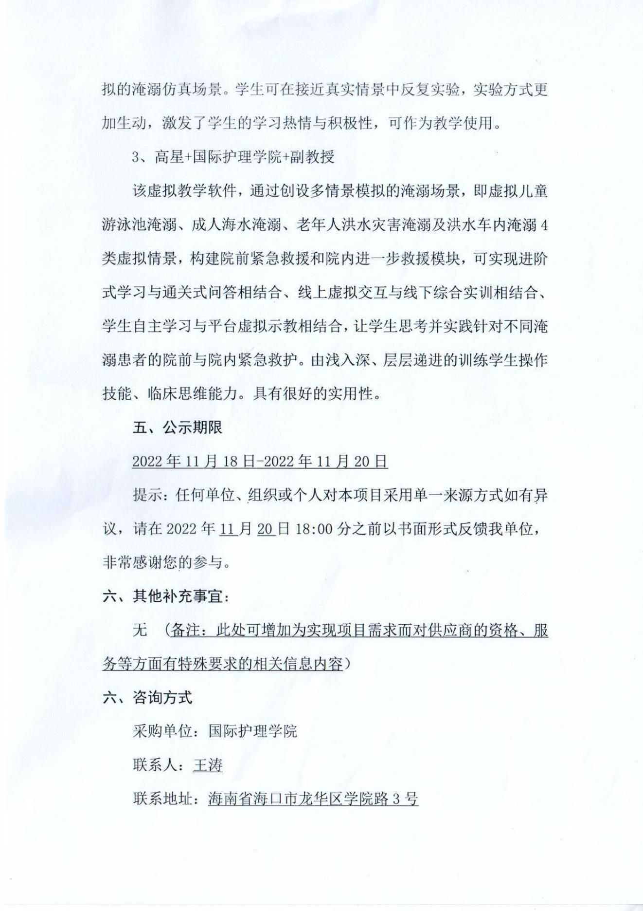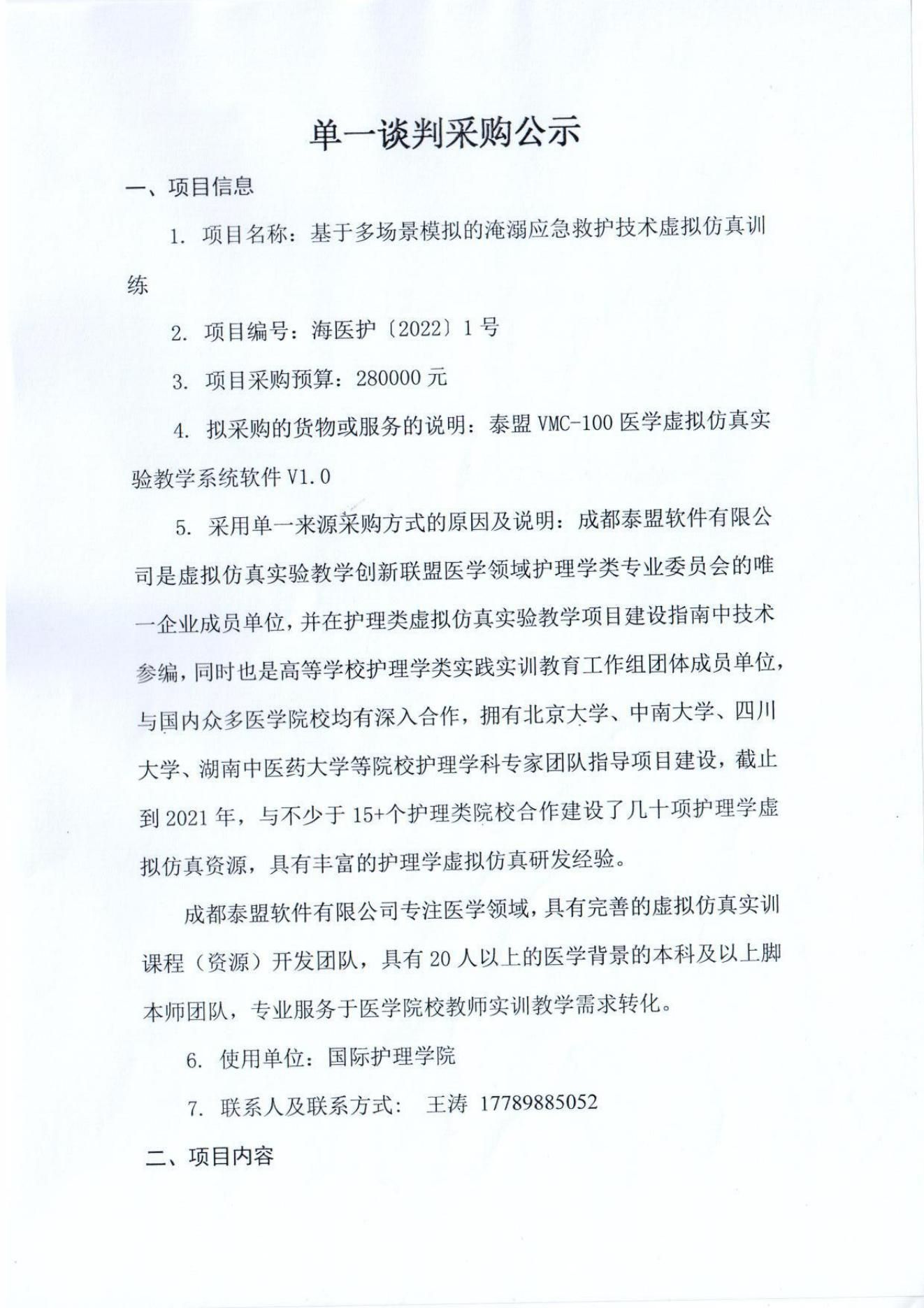 关于《基于多场景模拟的淹溺应急救护技术虚拟仿真训练》项目的单一谈判采购结果公示