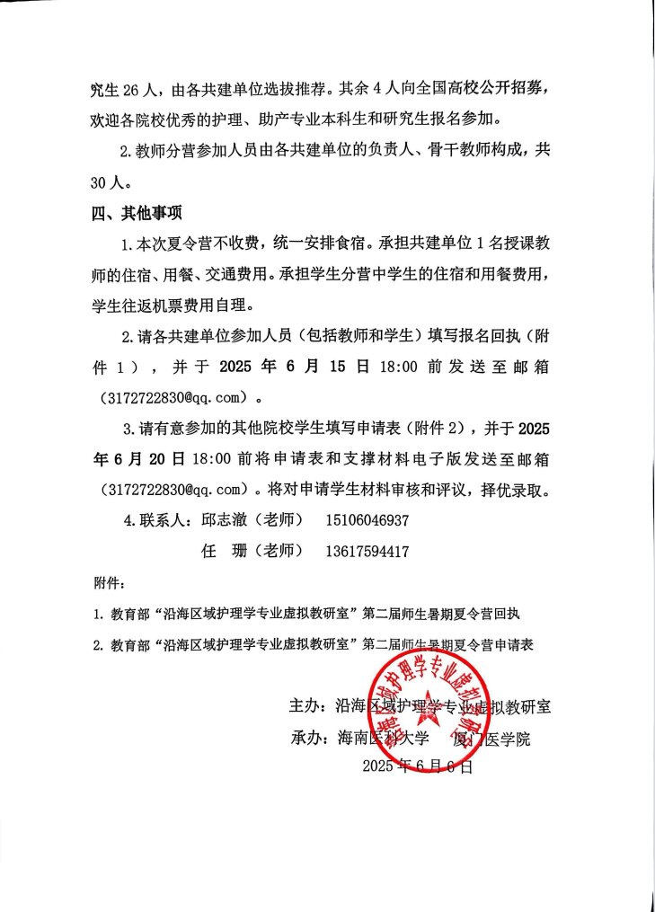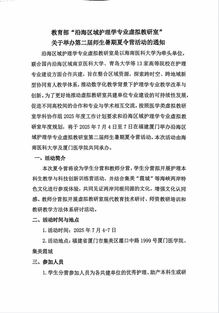 教育部“沿海区域护理学专业虚拟教研室关于举办第二届师生暑期夏令营活动的通知